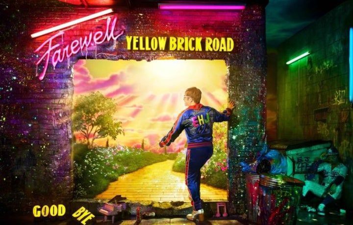 As the band left the stage and Elton climbed into a lift. It slowly ascended the curve of the screen to where a door had appeared, and Elton exited through it as the screen switched to an image of him walking down the yellow brick road until he disappeared in a yellow burst of light.