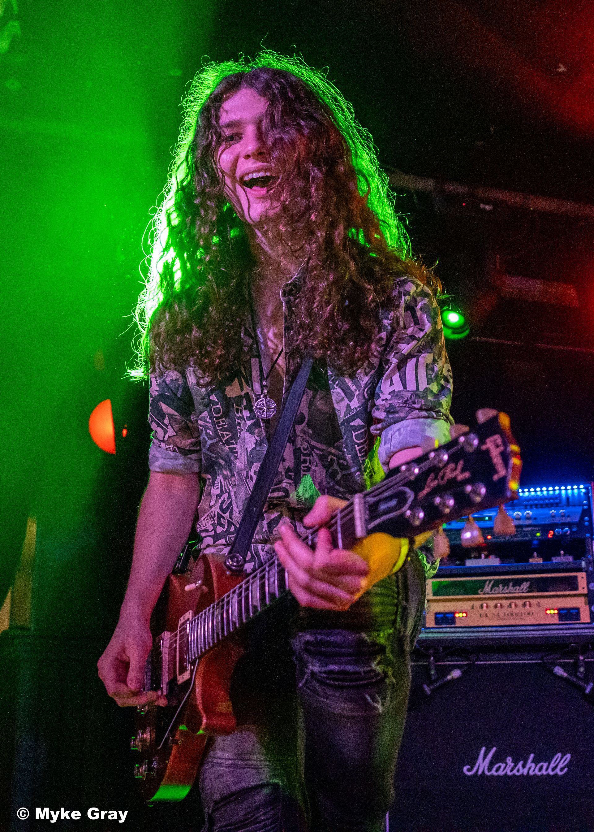 It was an early kick off and the punters were still making their way into the venue when the four fresh faced teenagers took to the stage. A line up consisting of James Bartholomew on lead vocal and guitar, Tyler Arrowsmith on guitar, Ricky Hodgkiss on bass, and Ed Evans on drums. The star quality within this band is obvious before they even play a note. Arrowsmith, which has to be one of the most rockstar names I’ve ever heard, looks like he came out of the womb holding a guitar. Blessed with good looks and amazing hair he is every inch the guitar hero. Bartholomew is a unique entity, not only is he a natural frontman, but he looks equally comfortable with or without a guitar. A rare quality and I’m struggling to come up with an obvious comparison. A lot of singers hide behind their guitar but this is certainly not the case for Bartholomew. Throughout Rock history the dynamic tension between lead singer and lead guitarist makes the stuff of legends. Page & Plant, Jagger & Richards, Tyler & Perry, Slash & Rose, Bon Jovi & Sambora, Roth & Van Halen, the list goes on and on. Magical things are destined to happen when the universe mysteriously brings these kindred spirits together. You would have to be deaf, dumb and blind not to see the obvious chemistry between Arrowsmith and Bartholomew. Granted, it’s still in its embryonic stages, but even so, the potential is glaring you in the face. I would have to go back decades to name an emerging UK rock band that possesses this kind of iconic potential.