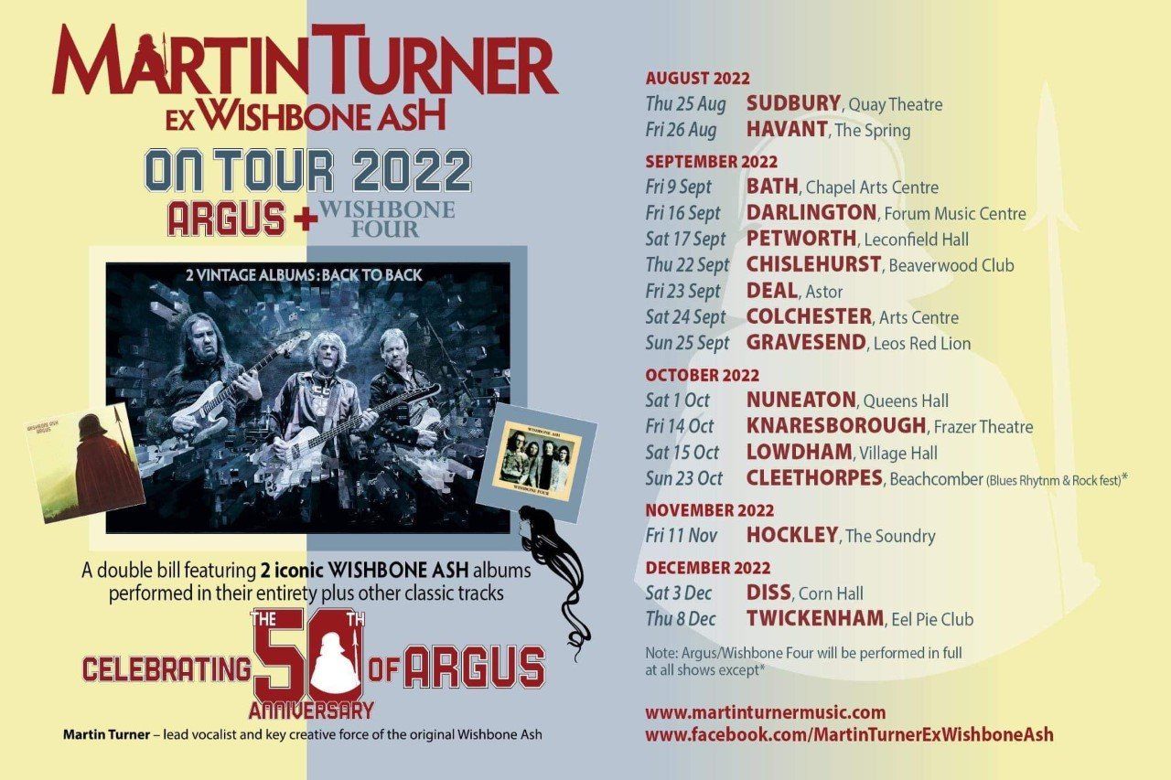 It’s difficult not to feel for Martin Turner; as founder member, principal songwriter, vocalist and bassist extraordinaire for Wishbone Ash, it must be a bit of a kick to be stripped of the right to use the name. Thankfully, it hasn’t stopped him performing the music and this tour is a real treat, a chance to hear two classic albums in their entirety.