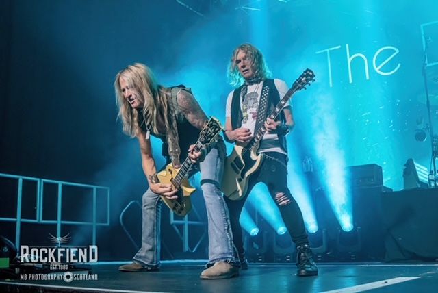 The venue wasn’t overly packed when Hollywood, California band The Bites arrived on stage for the first support slot of the evening. I have to admit that I hadn’t previously heard of them, despite the fact that their debut album fared well in the UK, so I’ve no idea how I’ve missed them! Anyway, salutary story (of sorts!); in early 2003, I attended Glasgow’s iconic Barrowlands venue to see Def Leppard, supported by a then unknown band called The Darkness. When The Darkness first arrived on stage, with Justin Hawkins wearing pink spandex and singing in his signature falsetto, it initially took the wind out of the Glaswegian audience with its camp, over exuberance. But by the end of the set, they’d won over a large part of the crowd and… well… the rest is award winning and often critically acclaimed rock history! It was pretty much the same for The Bites, with singer Jordan Tyler bounding onto the stage wearing running leggings and exuding a sprightly energy that woke up audience members who’d perhaps arrived at SWG3 straight from work! The initially unsure crowd quickly warmed to the fun-filled Californians, as they showed a stagecraft way beyond their years, with bassist Zack Currier and guitarist Jonno Richer often exploring the opposite side of the stage from their standard positions whilst drummer Mark Hylander kept the beat with the precision (and at times look!) of John Bonham! Tyler jumped and high-kicked with hamstring-tearing vigour throughout the performance, engaging the crowd at every opportunity as they played through a number of their 1980s, Sunset Strip inspired songs from their debut album, such as ‘Knockin’ On The Door’, ‘Pretty Boys’, ‘Heather Leather and their ode to their Hollywood home, ‘Dirty City’ (it could also be an ode to certain, well documented areas of Glasgow at the moment… but I digress!). By the end of the set, the Glasgow audience were bopping heads, pumping fists and clapping hands high in the air, won over by a high energy and entertaining performance by The Bites. The affable members took time to meet anyone who wanted to see them at the merch stand (I had a brief chat with Jordan on the way out) and I’m sure that if they return to Glasgow sooner rather than later, in a venue such as The Cathouse or Slay on a Saturday night, they’d get the full ‘Glasgow experience’ from start to finish. Remember what I said about The Darkness? Well, watch this space for The Bites!