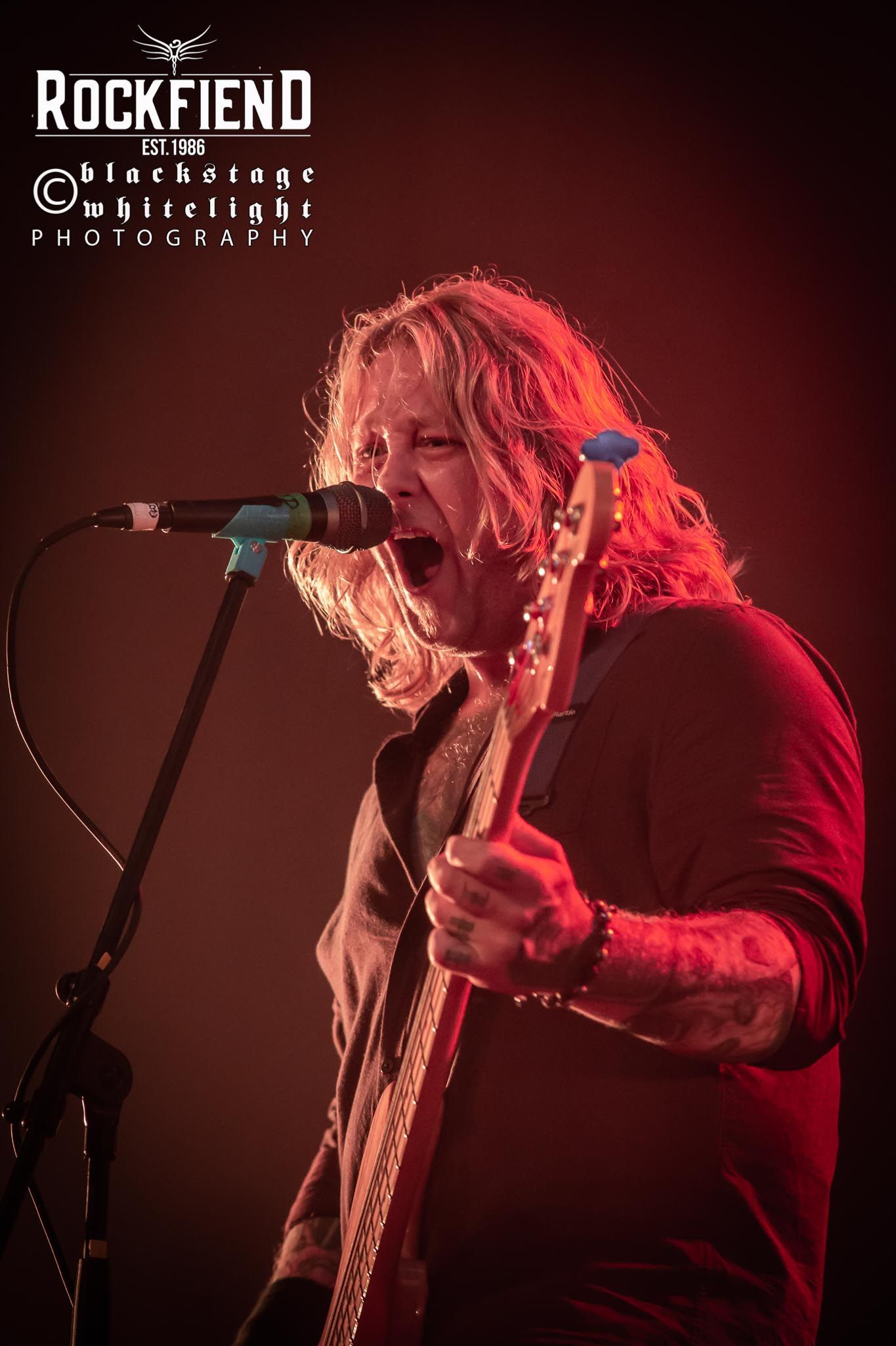 The heyday of the once obligatory instrumental solo is probably now long over as they can be a bit of a hit and miss at shows, with many punters using it as an opportunity to head to the bar for a drink rather than listening to 5 minutes of shredding guitar. But Those Damn Crows turned the solo part of a show on its head, allowing Lloyd and Ronnie to showcase their talents on bass and drums respectively. It was an incredibly refreshing rhythm section jam that I don’t think I’ve seen before and both looked as if they were having a great time, with Lloyd managing to kick his leg out at right angles in impossibly tight jeans! The solos led perfectly into the moody and menacing ‘Waiting for Me’, slightly less melodic than what had gone before and bringing a different vibe to proceedings.