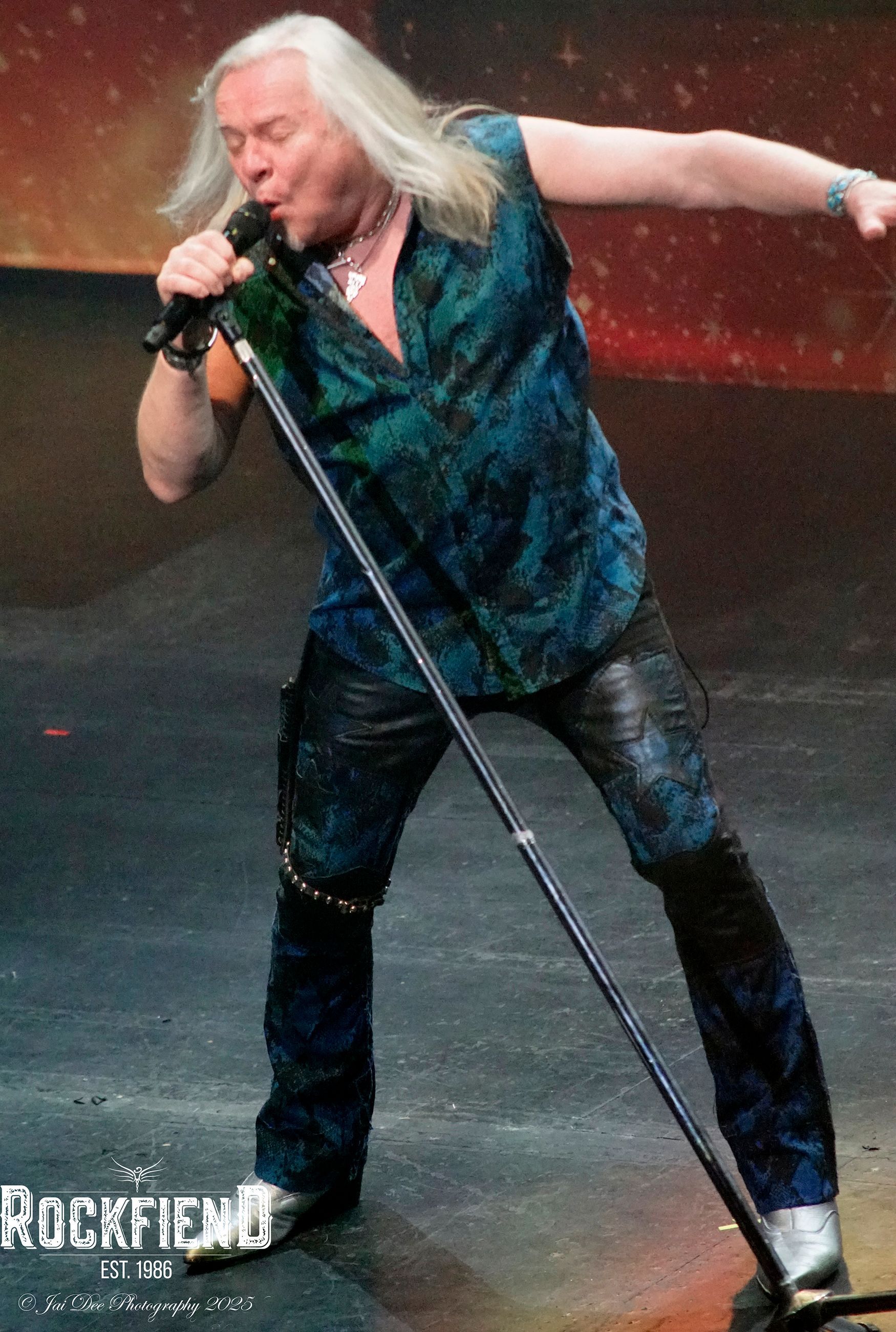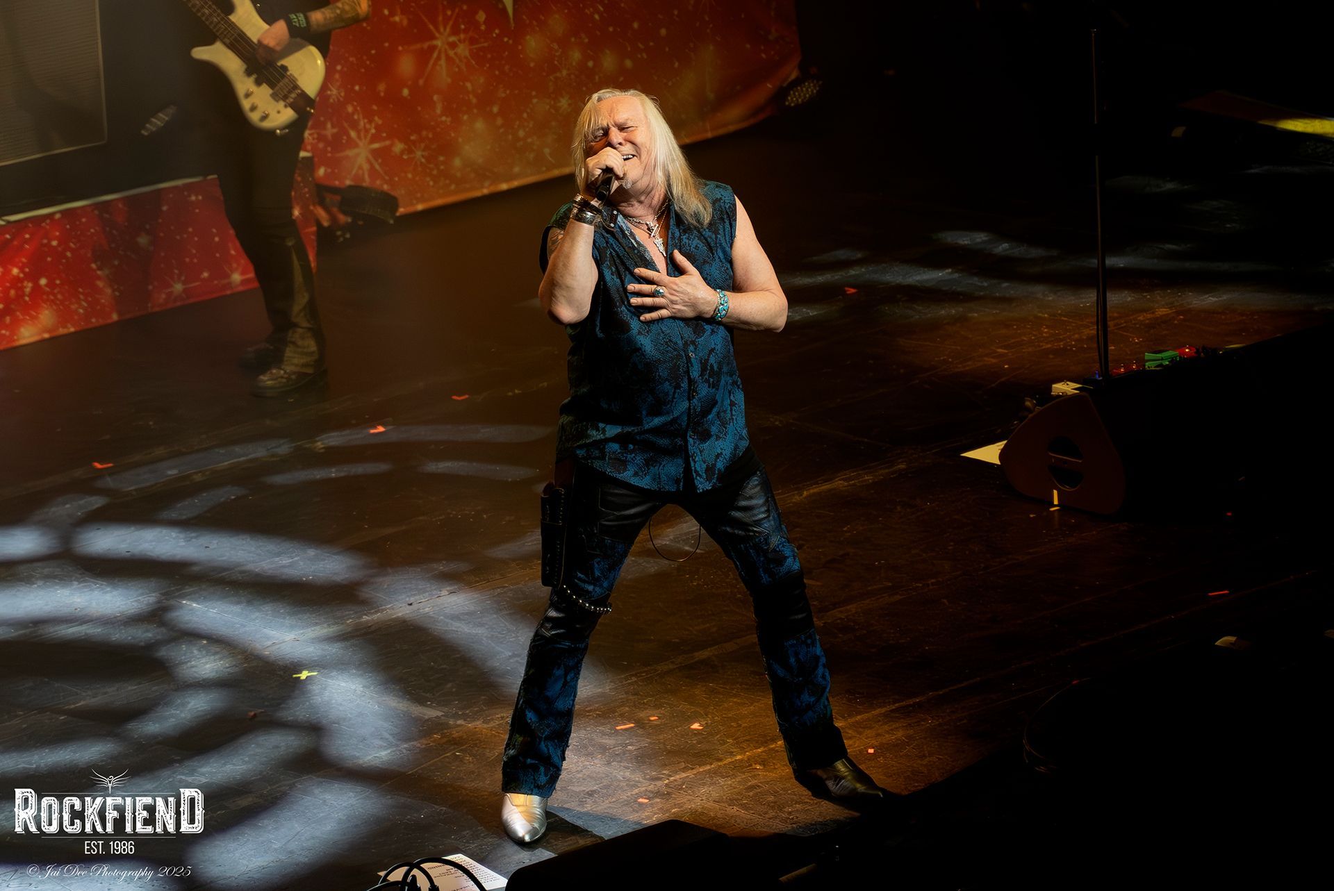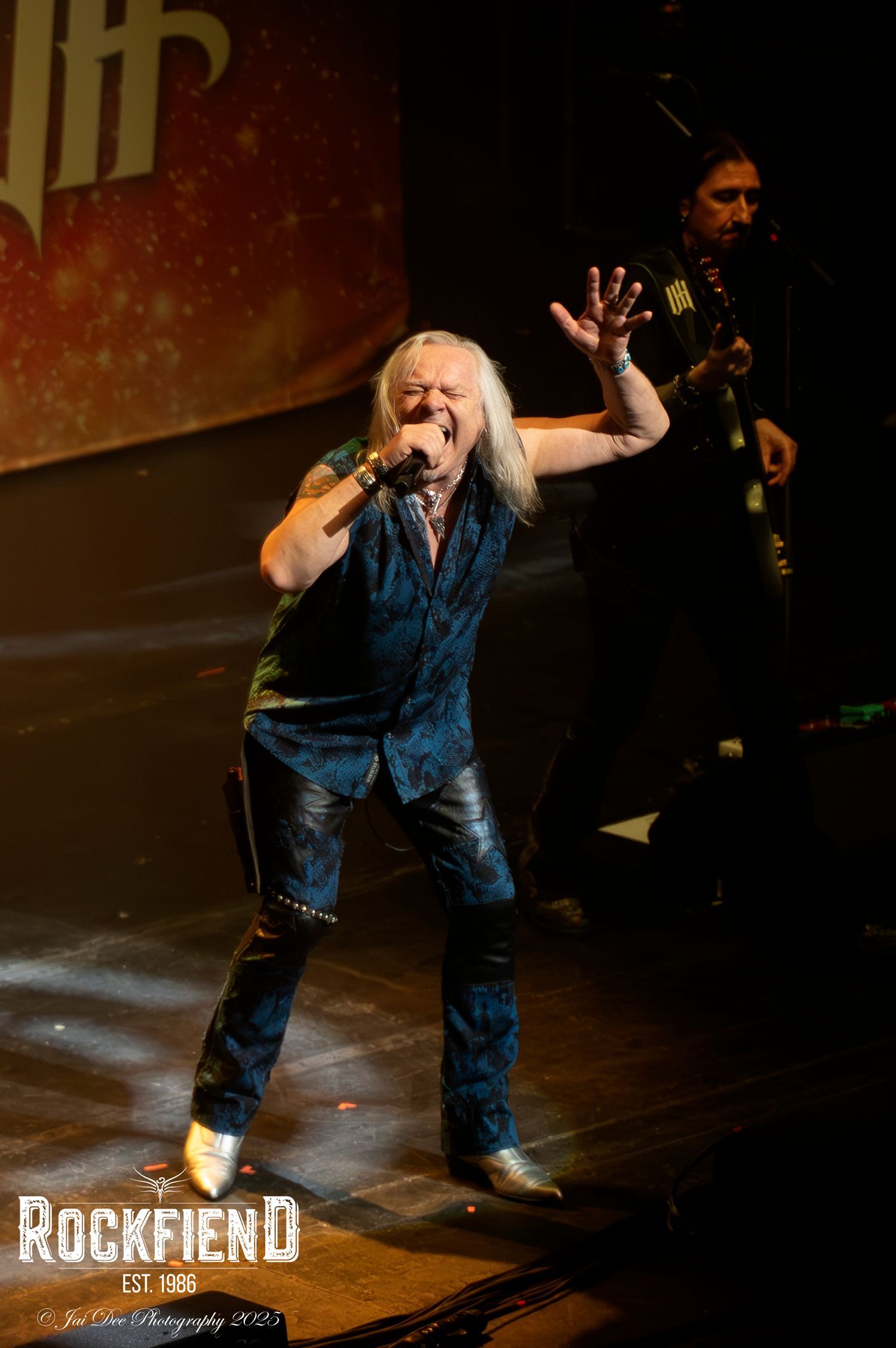 It’s perhaps brave to front load a set with three relatively recent songs (admittedly, ‘Overload’ is now a scary 17 years old, but in the lifespan of Uriah Heep, that’s still recent, isn’t it?!) but it’s proof, if needed, that this is a band who should never be viewed purely as a heritage act. ‘Grazed by Heaven’ and ‘Save Me Tonight’ are great songs, delivered with far more energy than should reasonably be expected from five men whose average age is somewhere around 68! Bernie Shaw’s charismatic performance makes a strong case for him to be regarded as the definitive Heep vocalist (not just the longest serving!). He urges us to our feet immediately and there we stay, quite a feat given the audience is not the most youthful (is there a more polite way to put this?!).