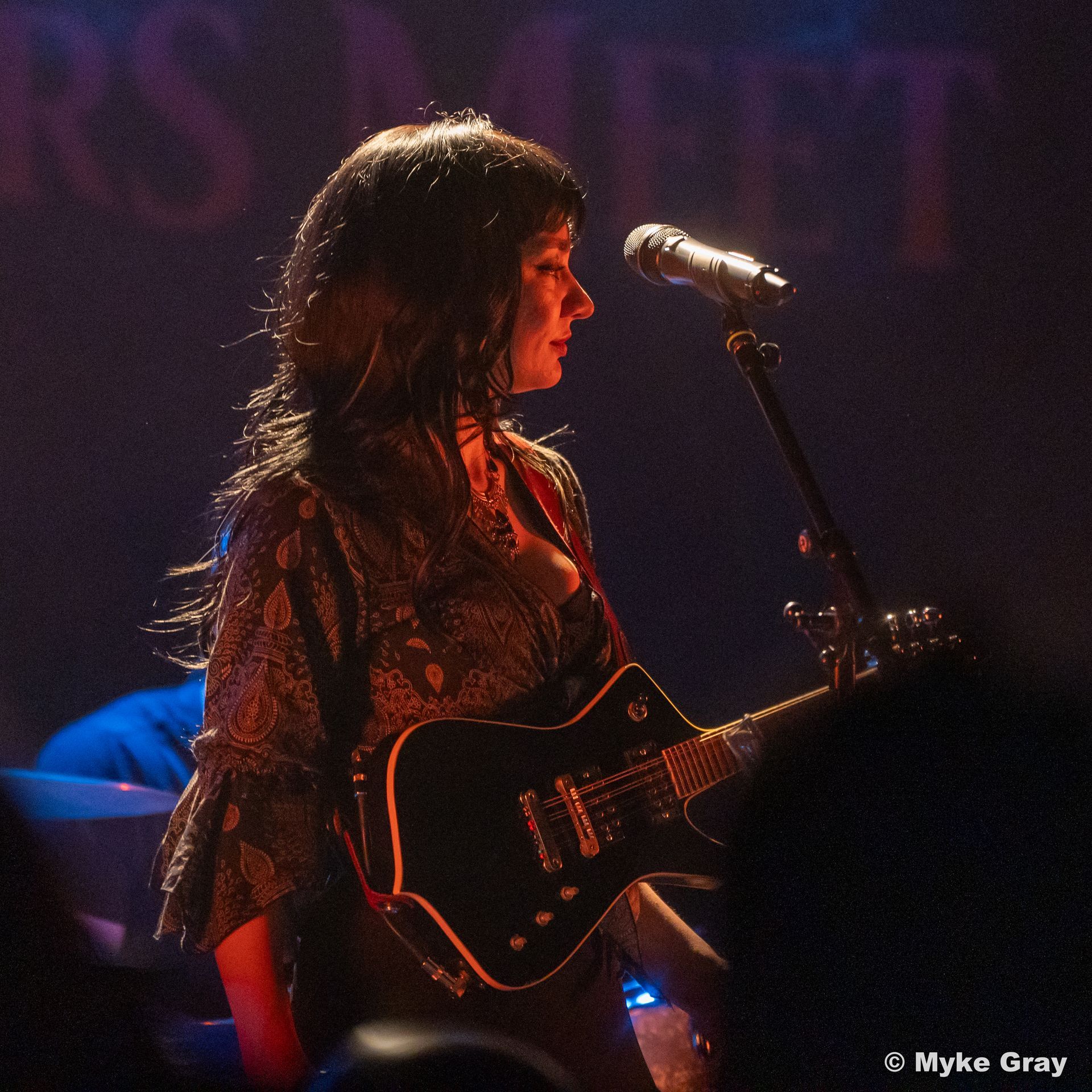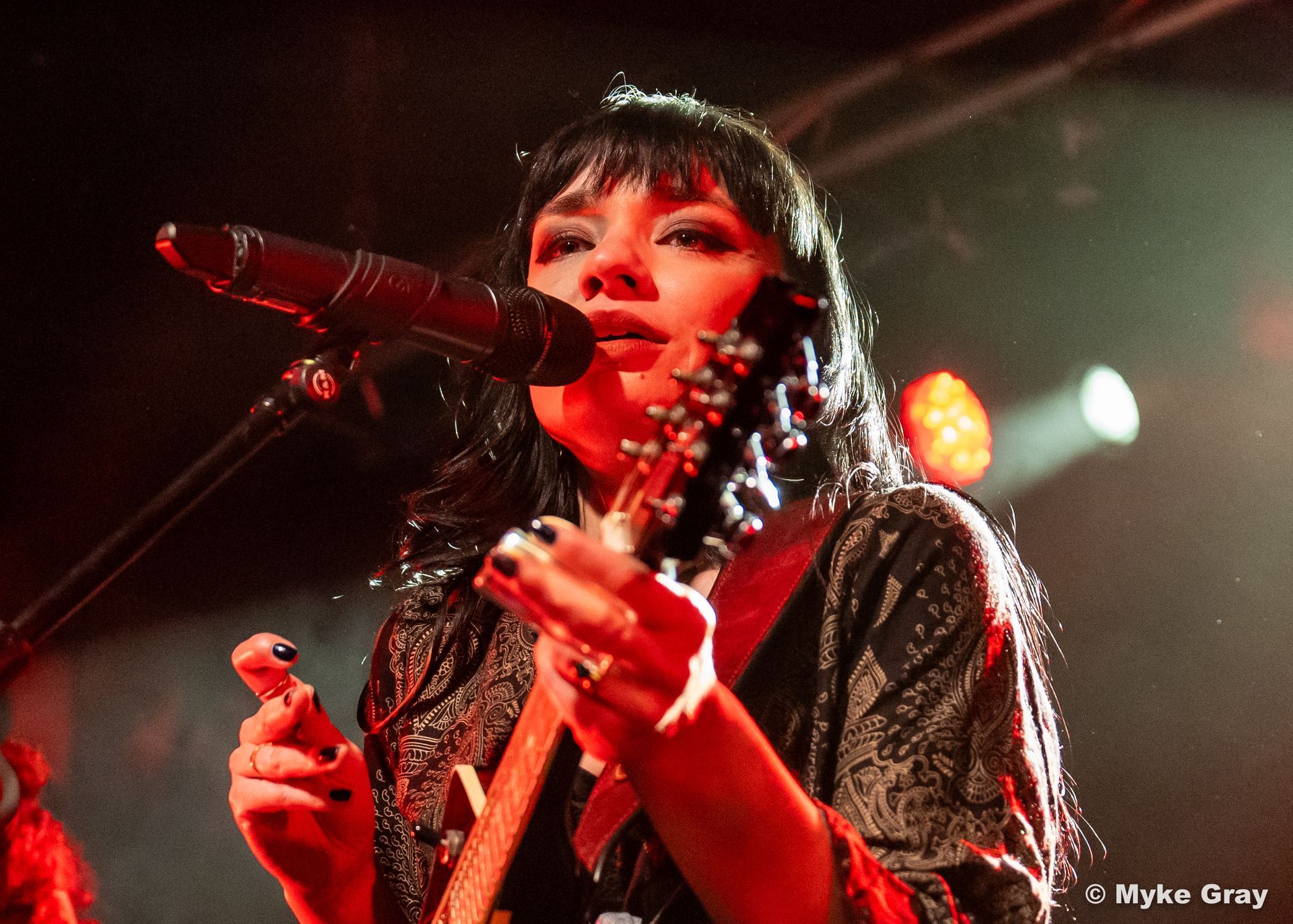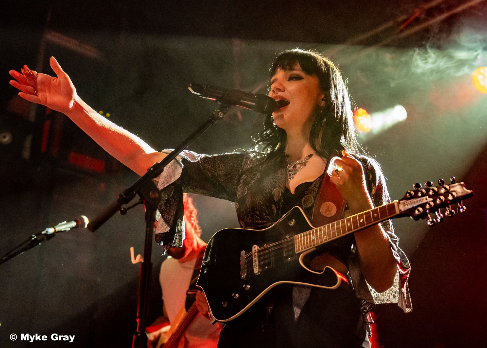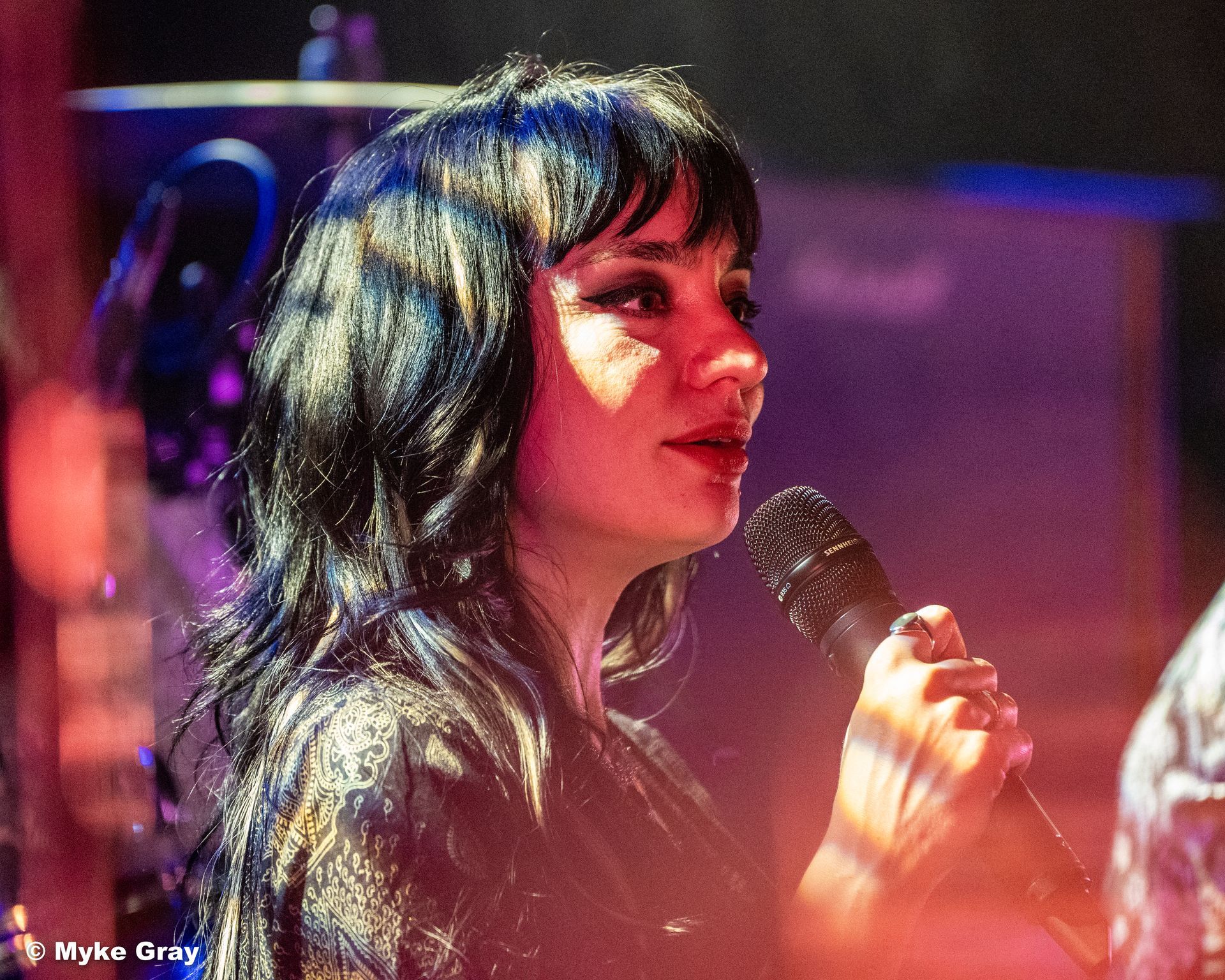 The first thing you can’t help but notice is the enchanting charisma of vocalist Grace Bond. It’s as if Cleopatra had returned from the grave to front a rock and roll band. Armed with a black Mandolin in the shape of a Gibson Iceman, she looked iconically cool.