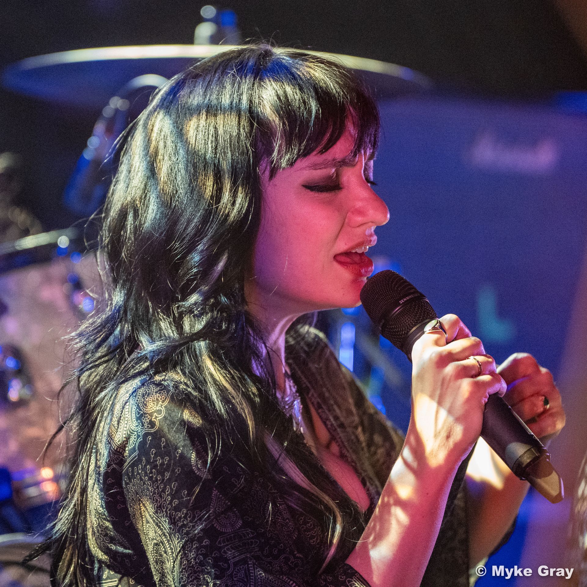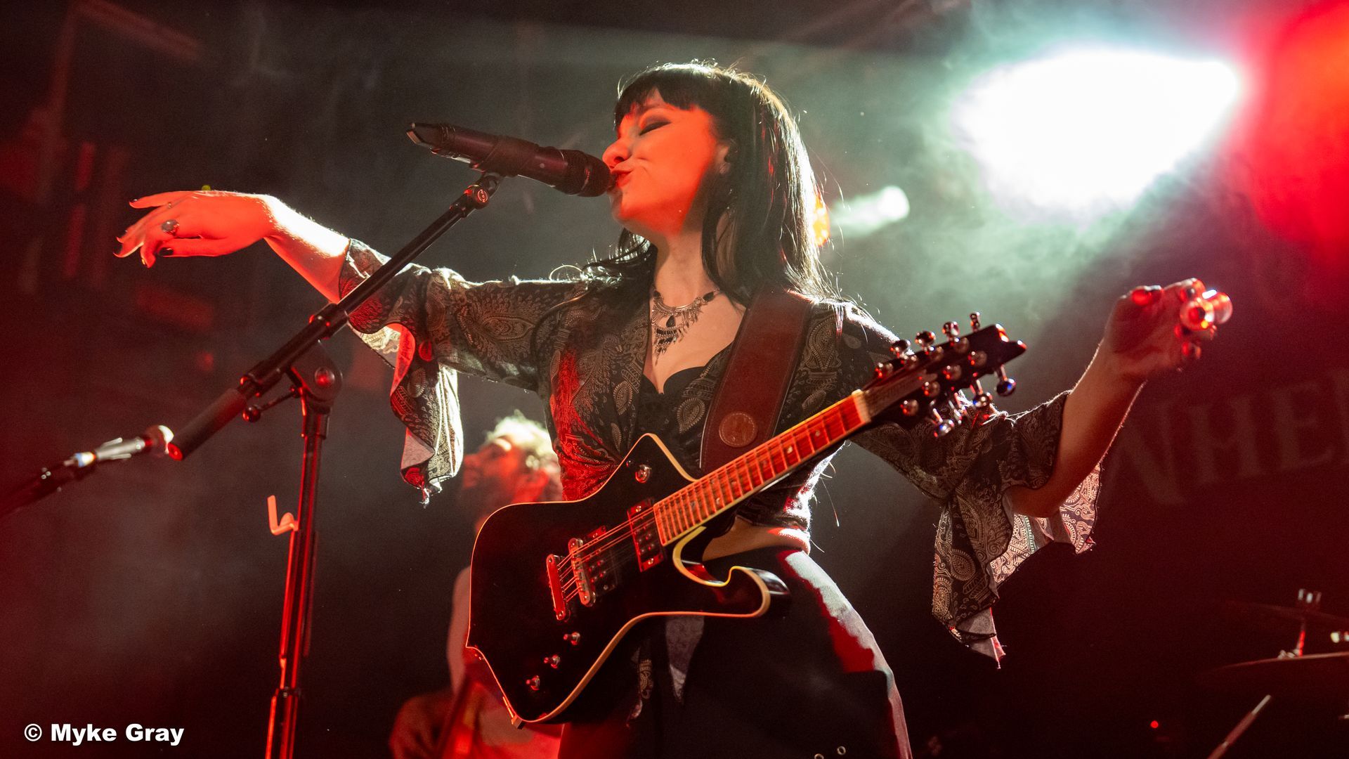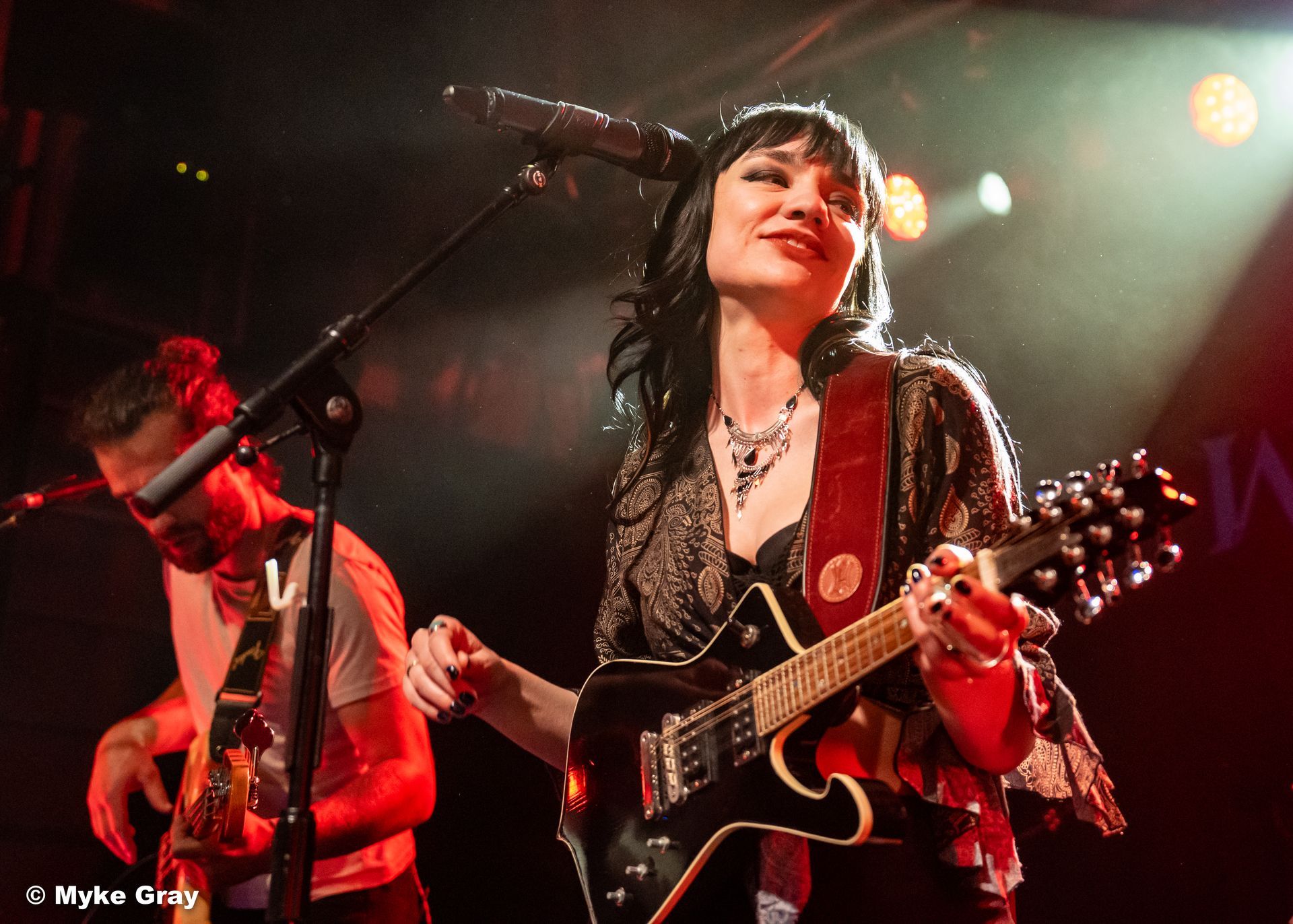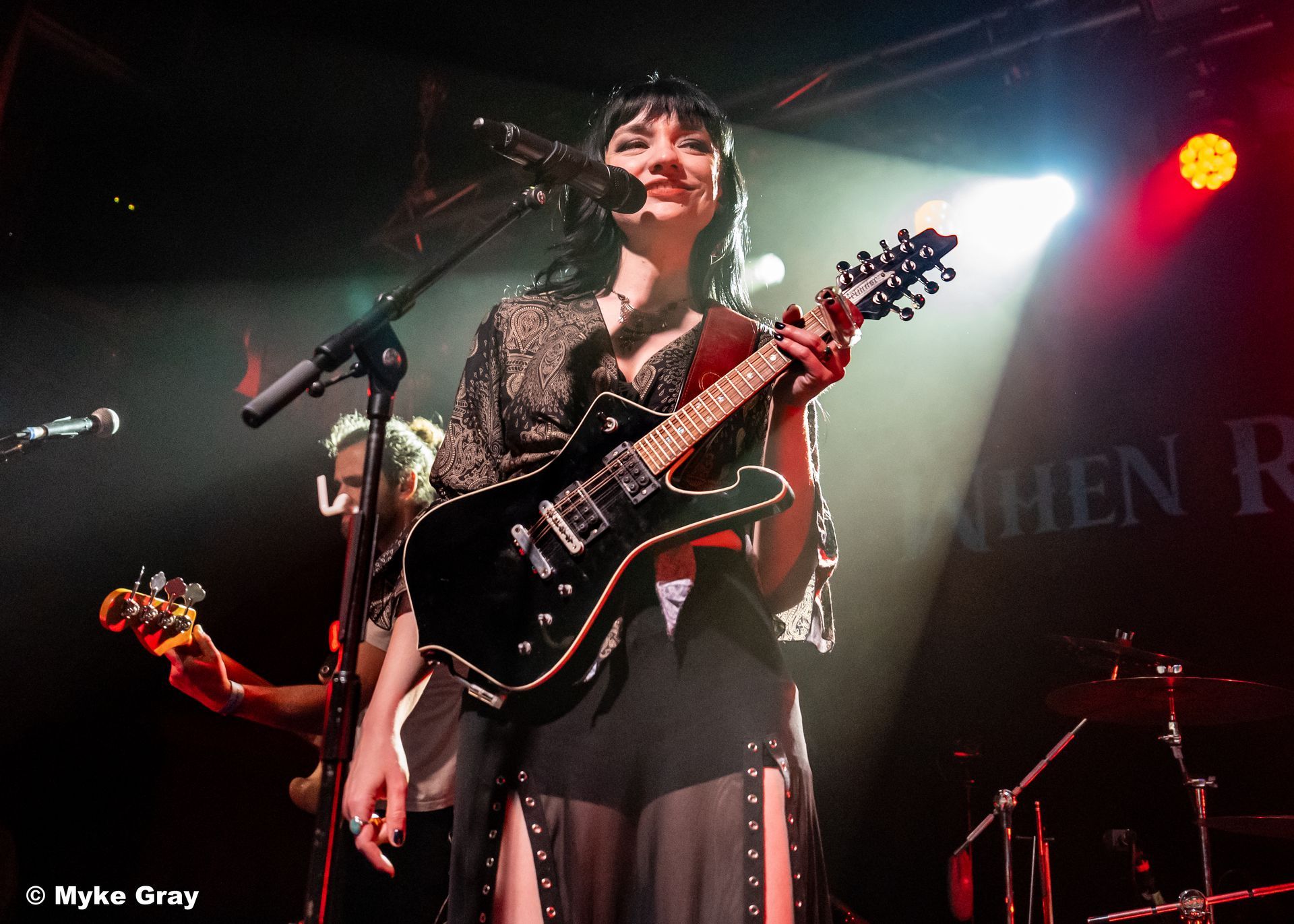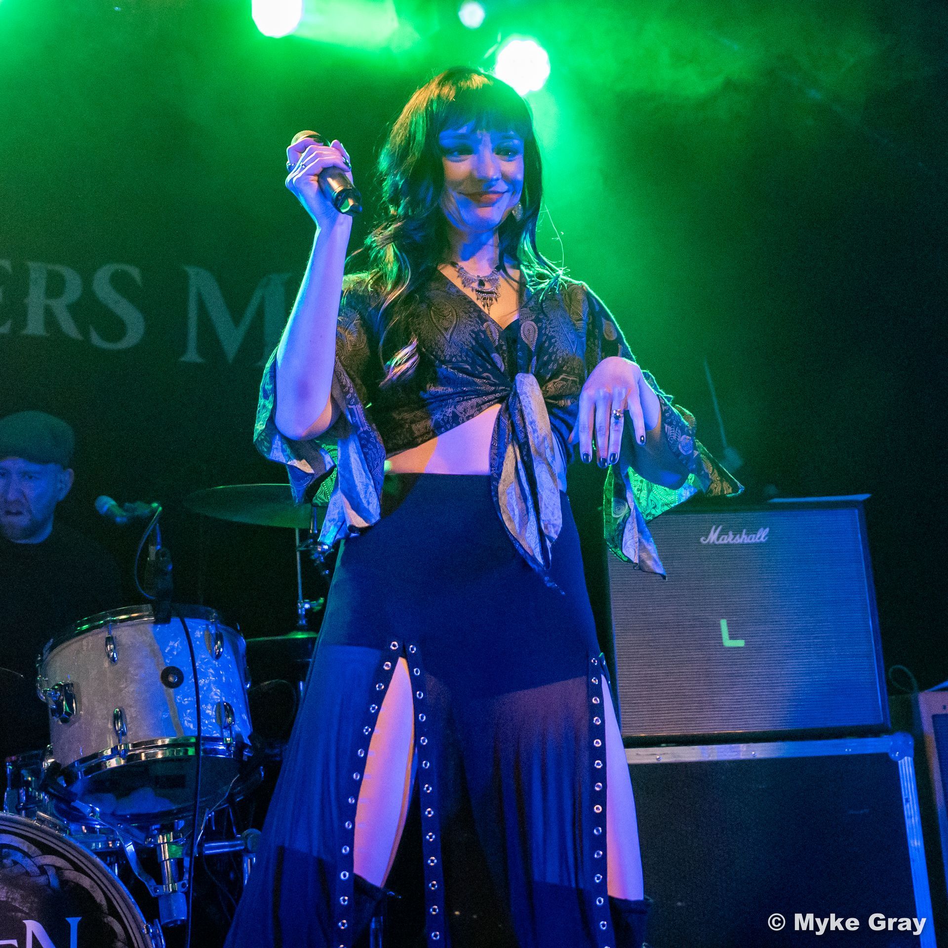 The first thing you can’t help but notice is the enchanting charisma of vocalist Grace Bond. It’s as if Cleopatra had returned from the grave to front a rock and roll band. Armed with a black Mandolin in the shape of a Gibson Iceman, she looked iconically cool.