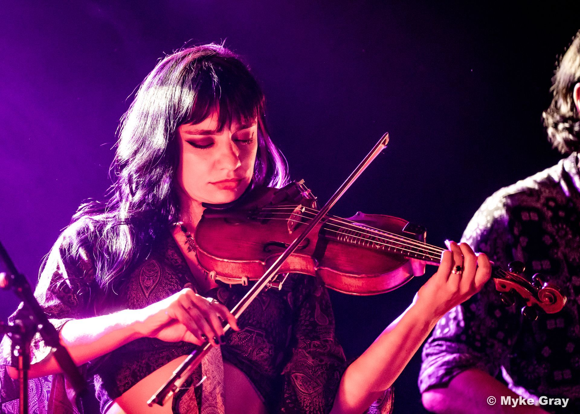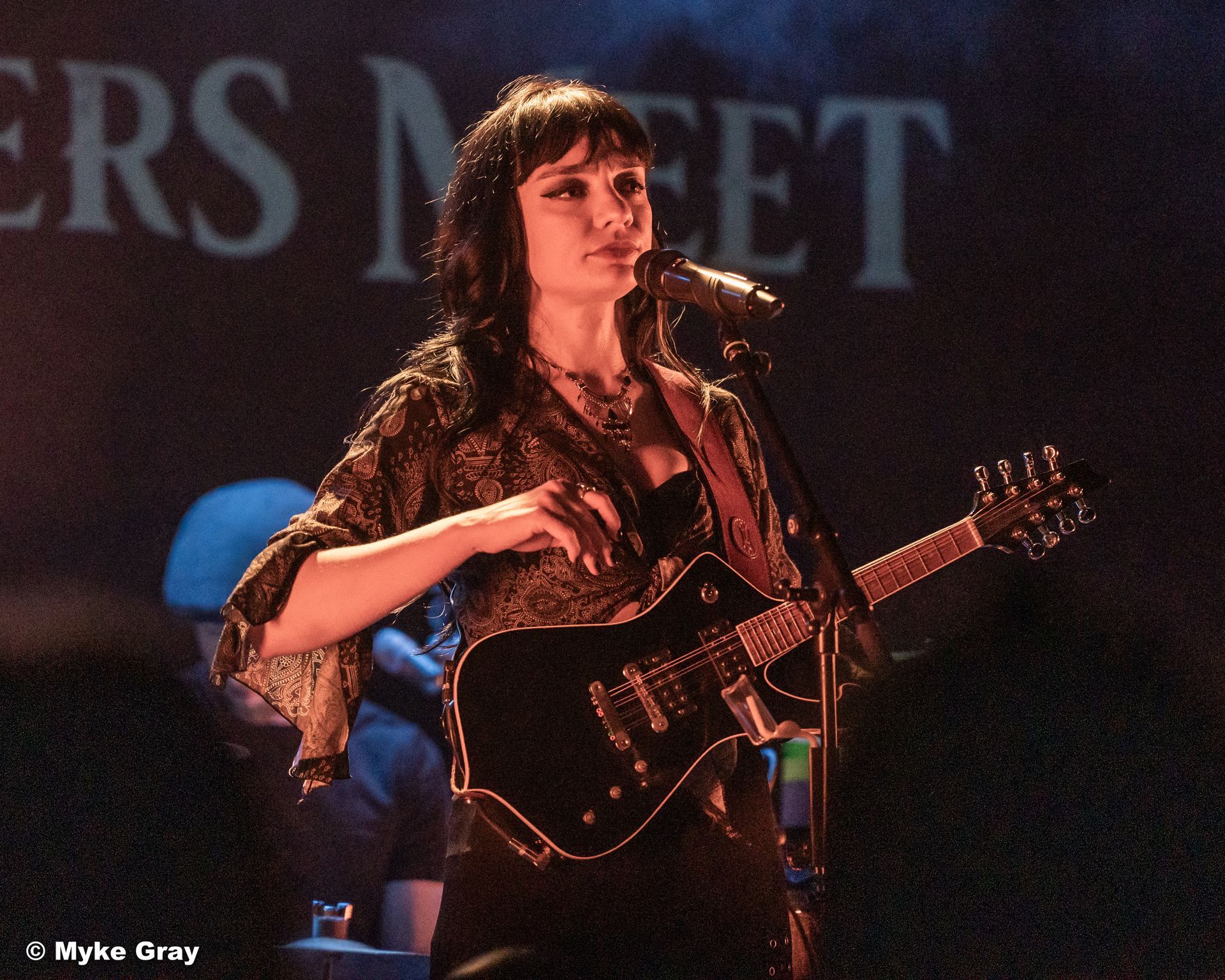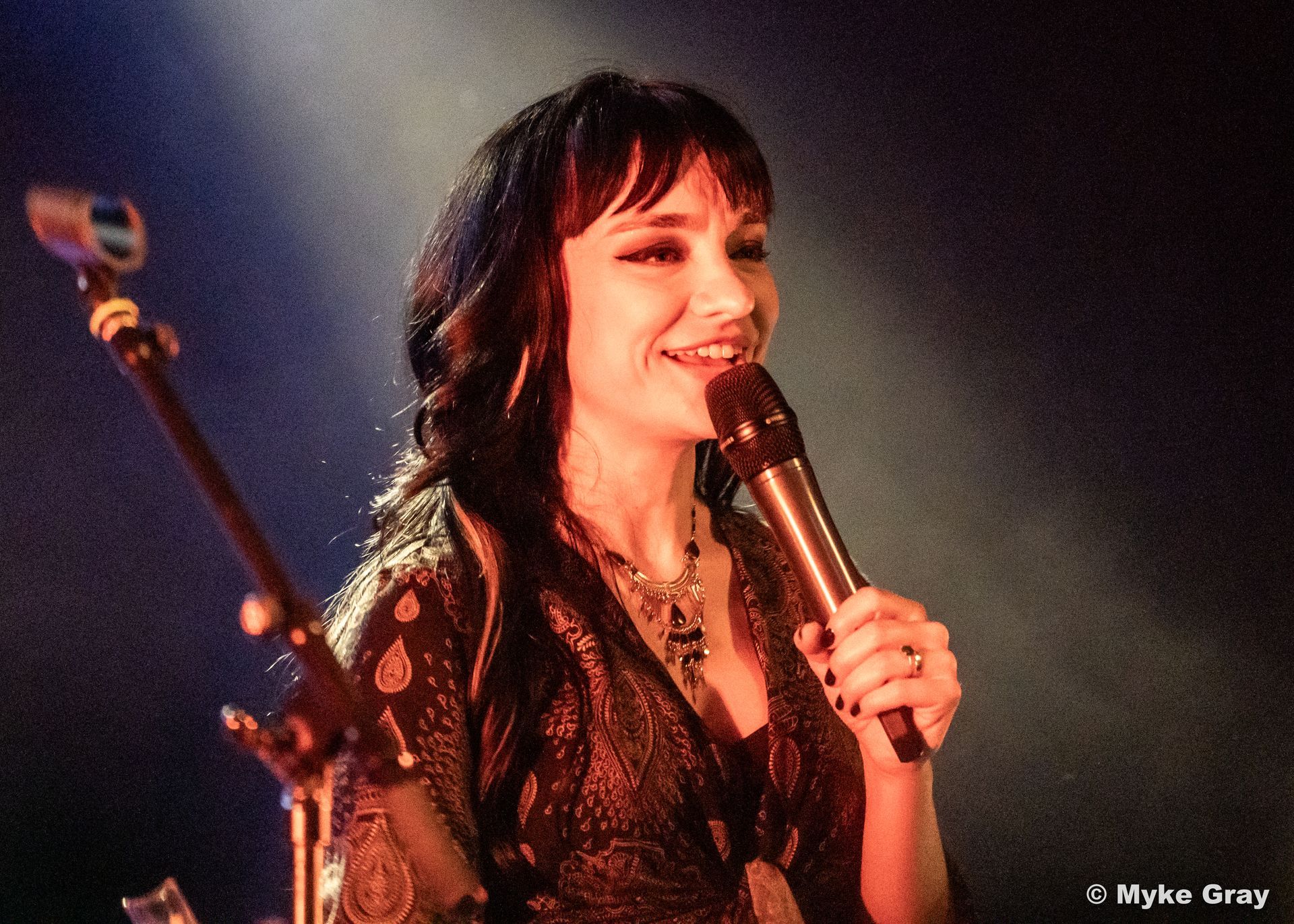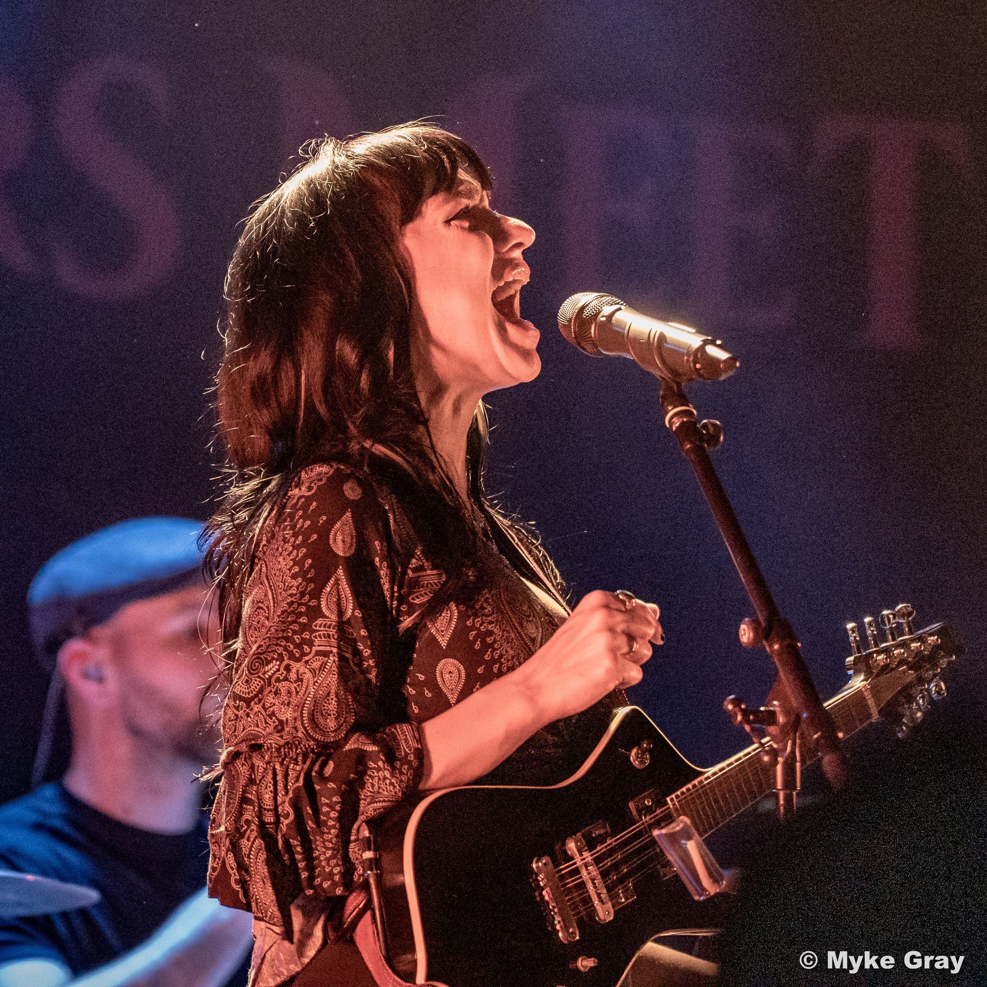 The first thing you can’t help but notice is the enchanting charisma of vocalist Grace Bond. It’s as if Cleopatra had returned from the grave to front a rock and roll band. Armed with a black Mandolin in the shape of a Gibson Iceman, she looked iconically cool.