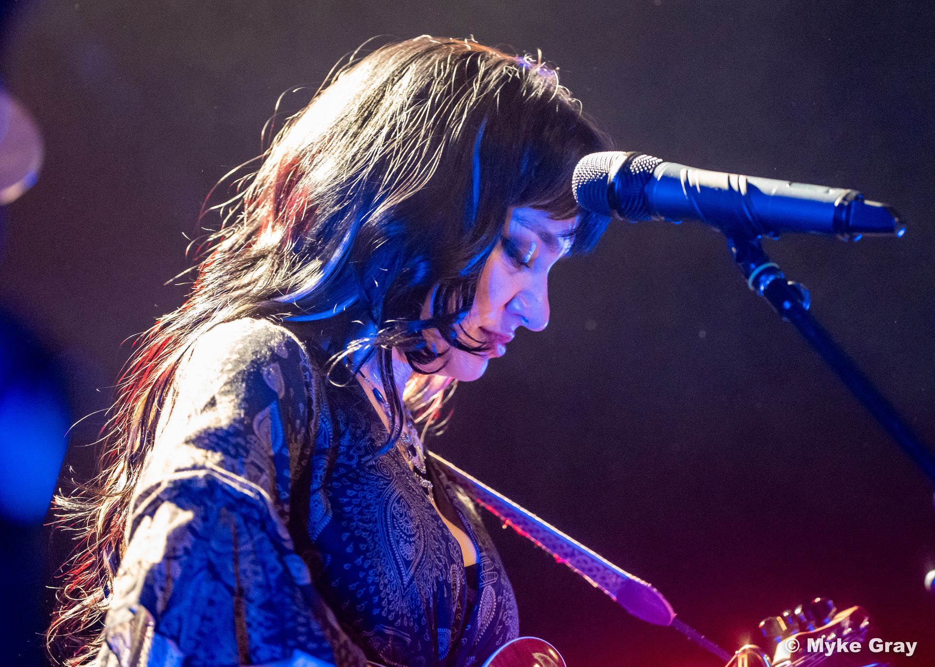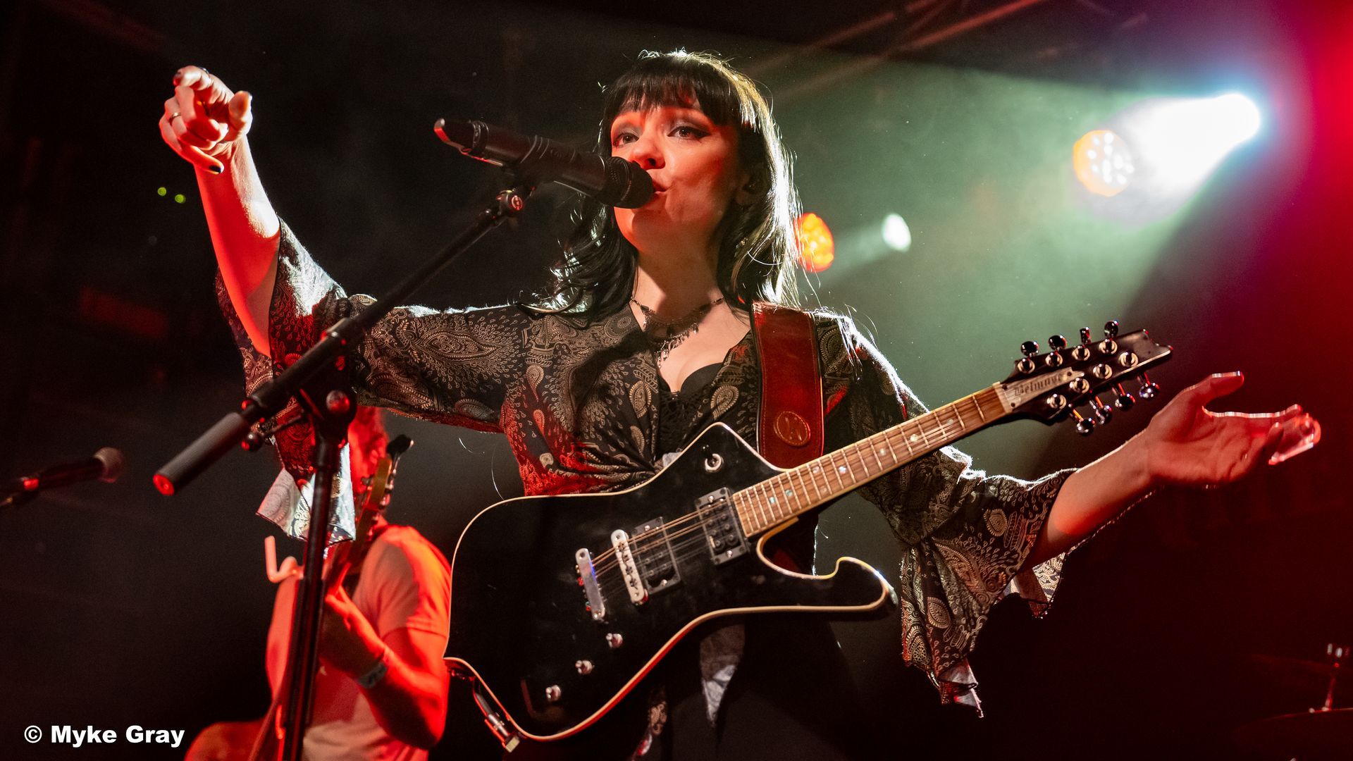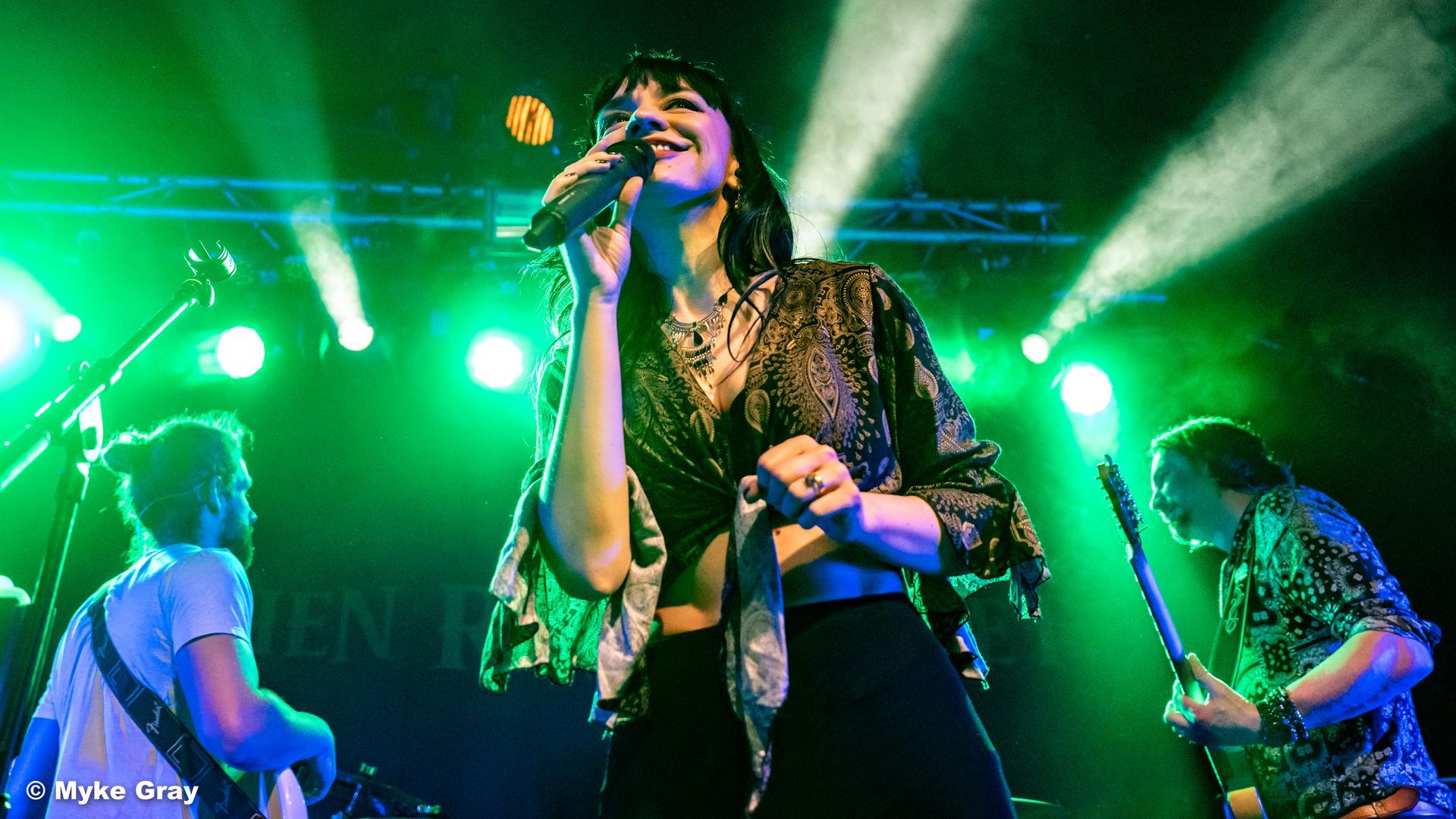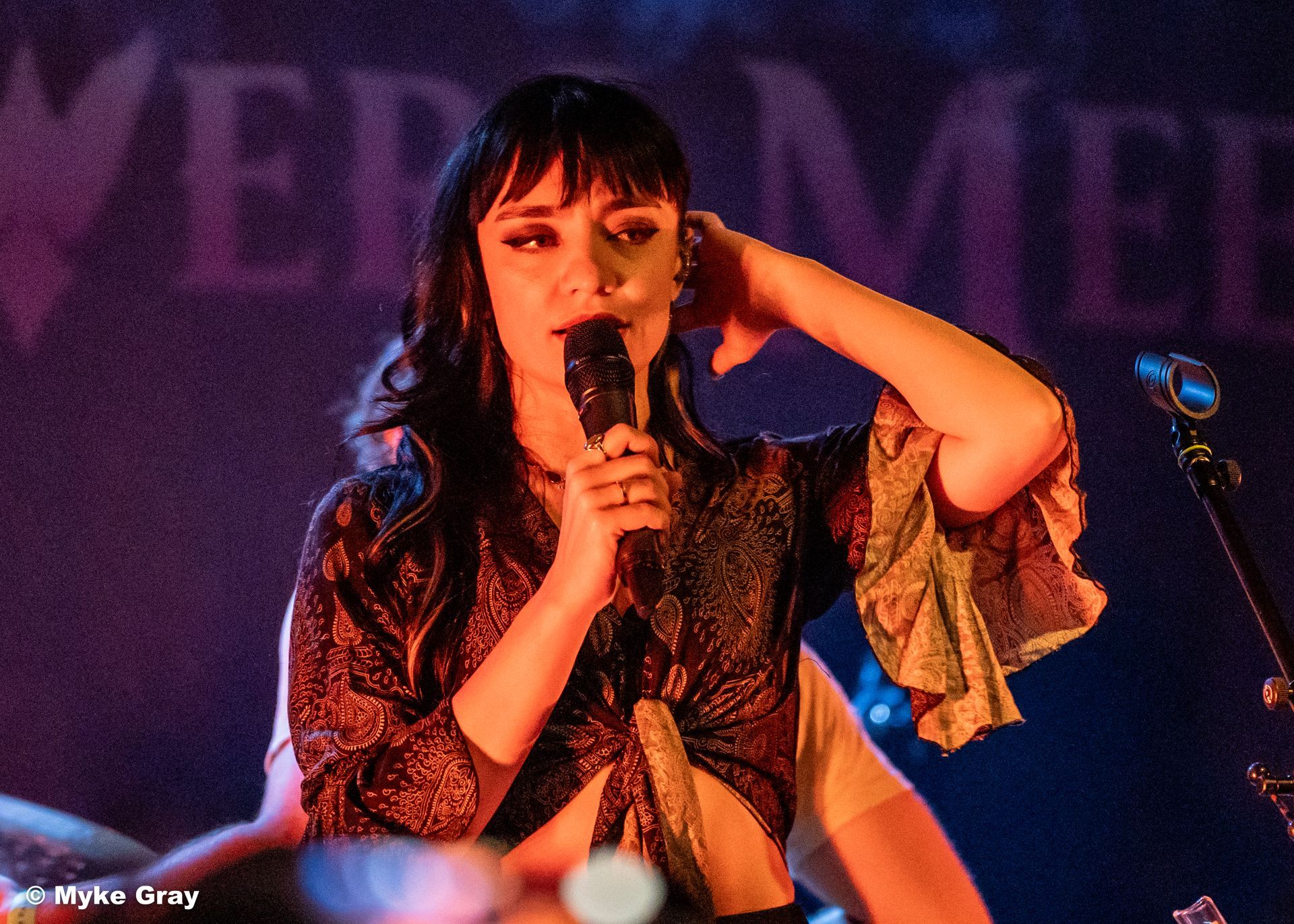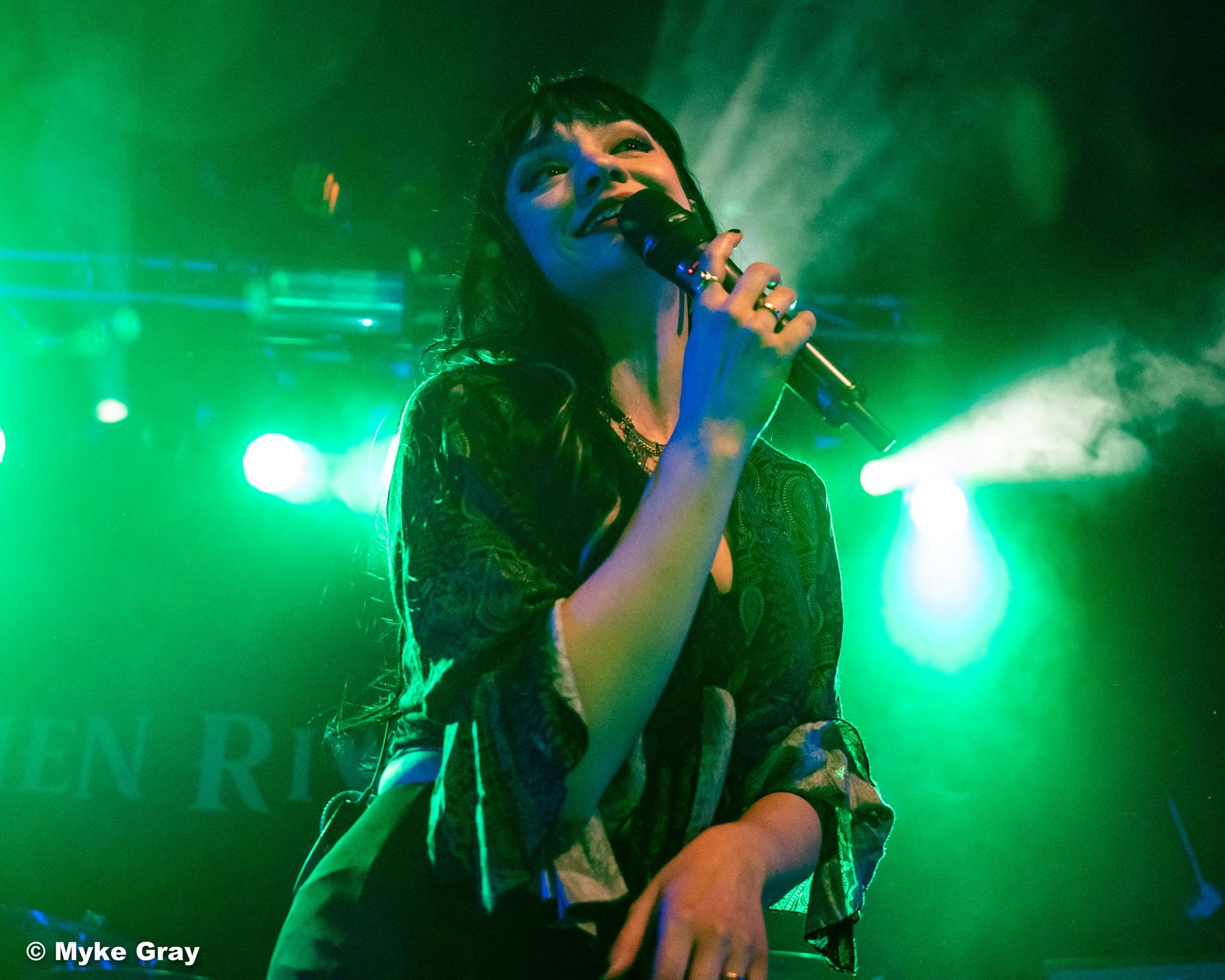 The first thing you can’t help but notice is the enchanting charisma of vocalist Grace Bond. It’s as if Cleopatra had returned from the grave to front a rock and roll band. Armed with a black Mandolin in the shape of a Gibson Iceman, she looked iconically cool.