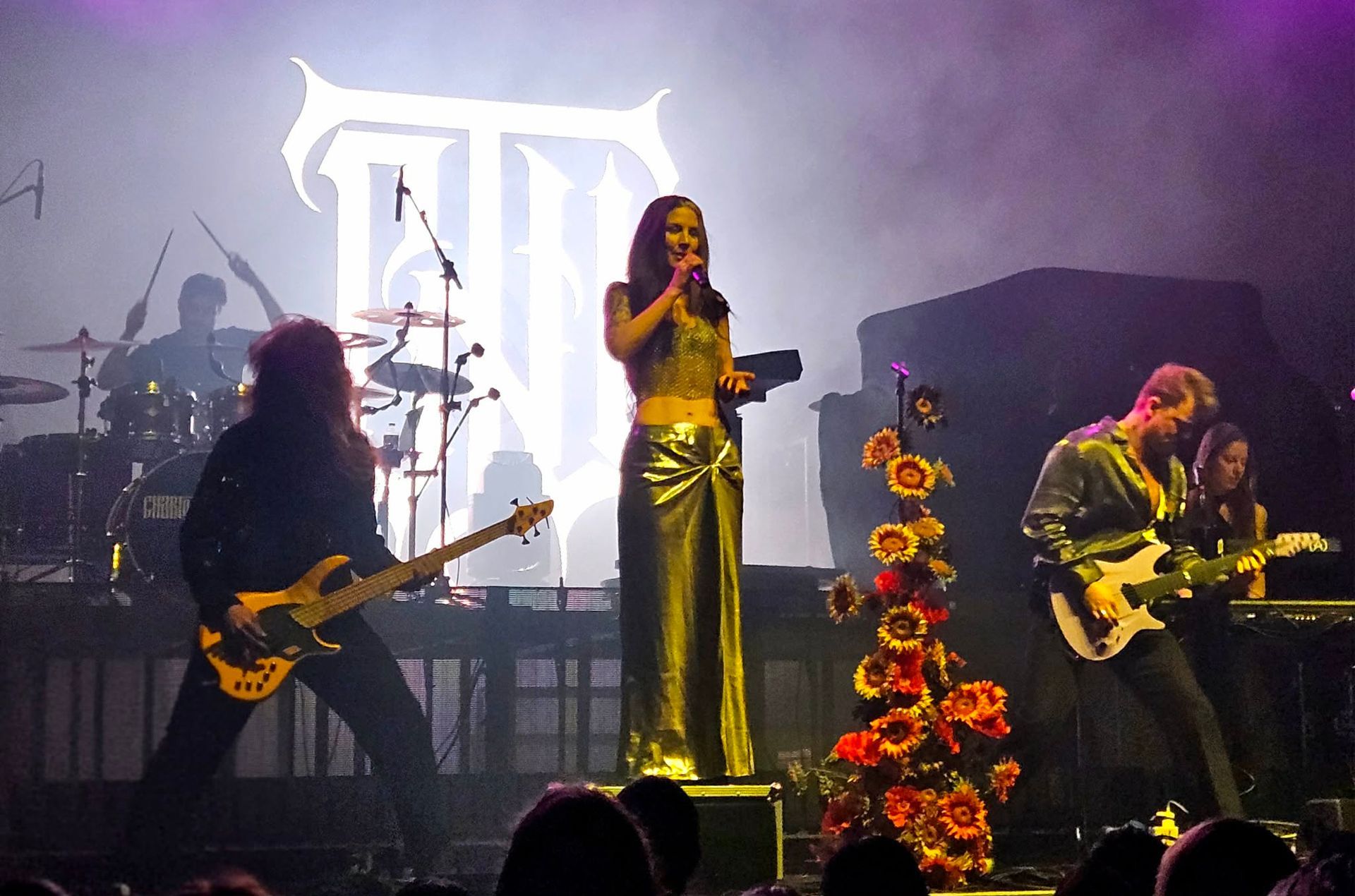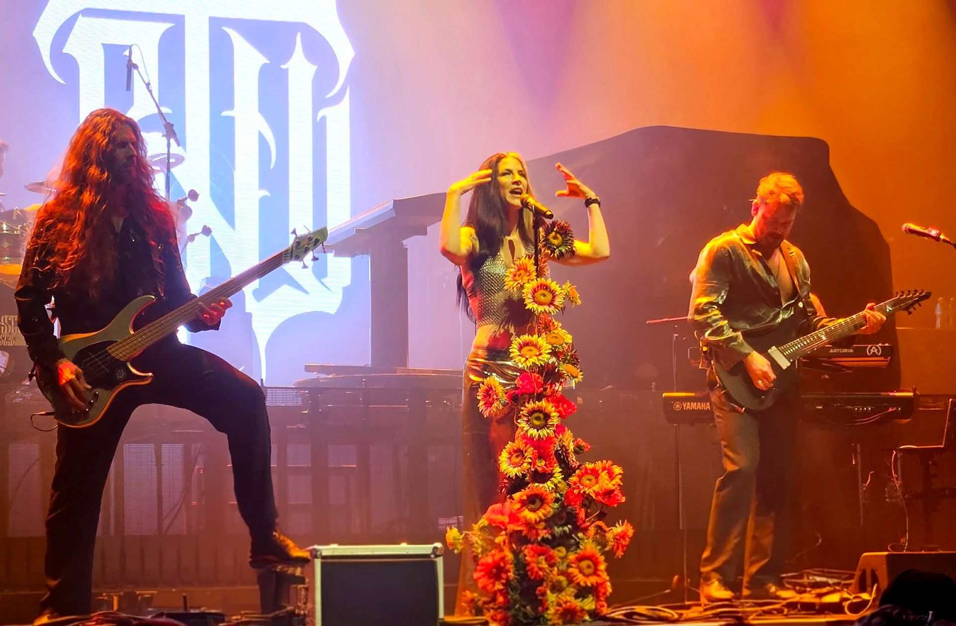 Epica have a strong pedigree in symphonic rock and some of their continental shows with orchestral backing look absolutely phenomenal. With last year’s album ‘Aspiral’, the band re-imagined and renovated their approach with a slightly more direct contemporary metal sound and that was reflected in the first few numbers. The visuals are different too, most noticeably with Simone Simons, who started in the shadows looking reminiscent of a Scottish Widows advert, before divesting the robes to reveal a new black-clad leather approach and futuristic glasses.
