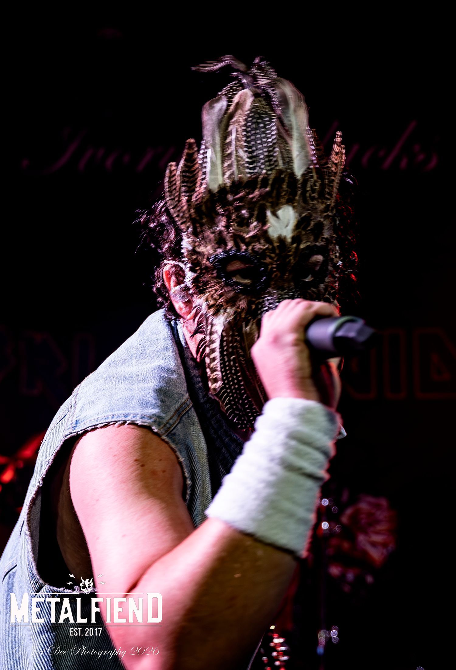Another costume change for "Powerslave" this time donning a feathered mask, again similar to Bruce again.