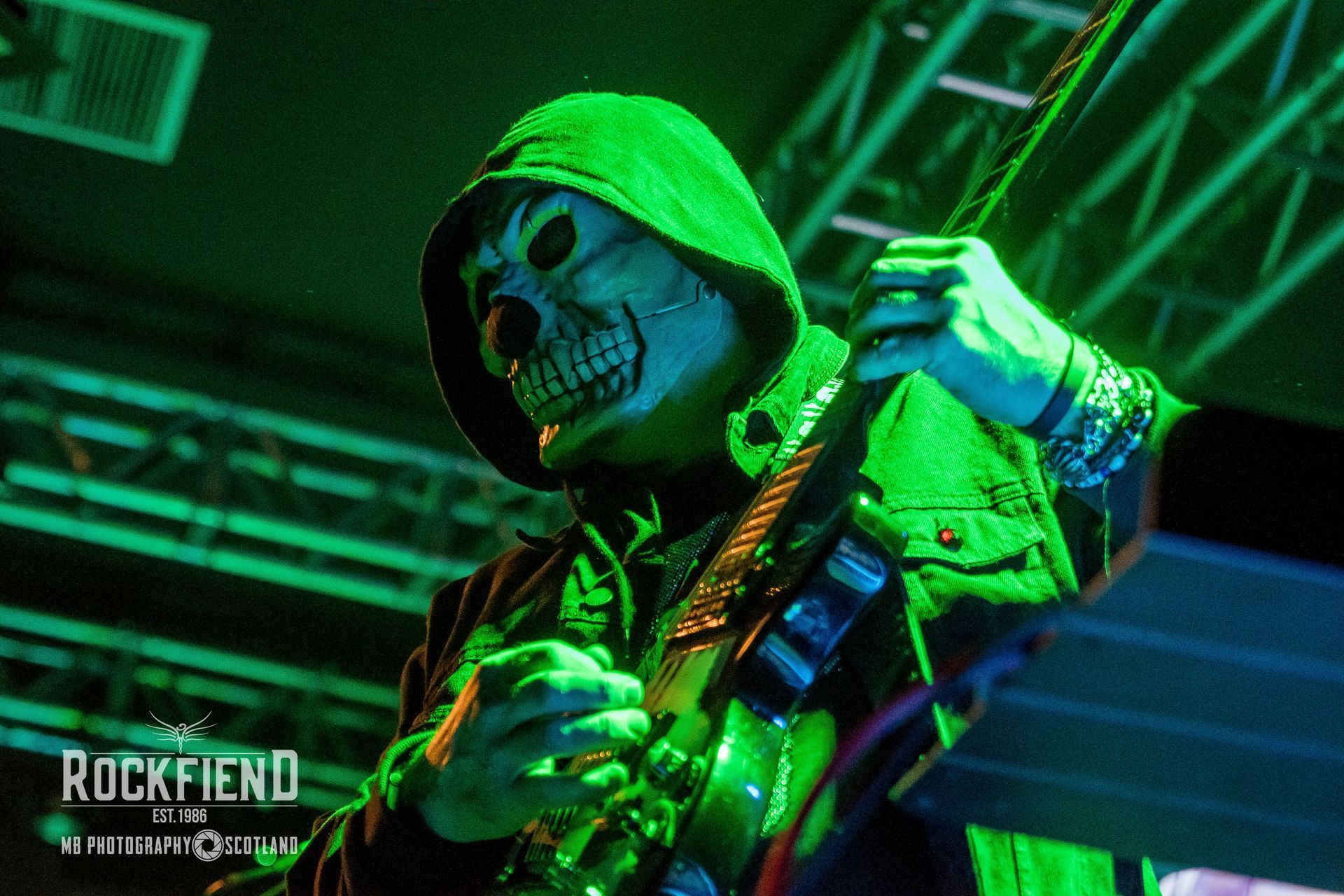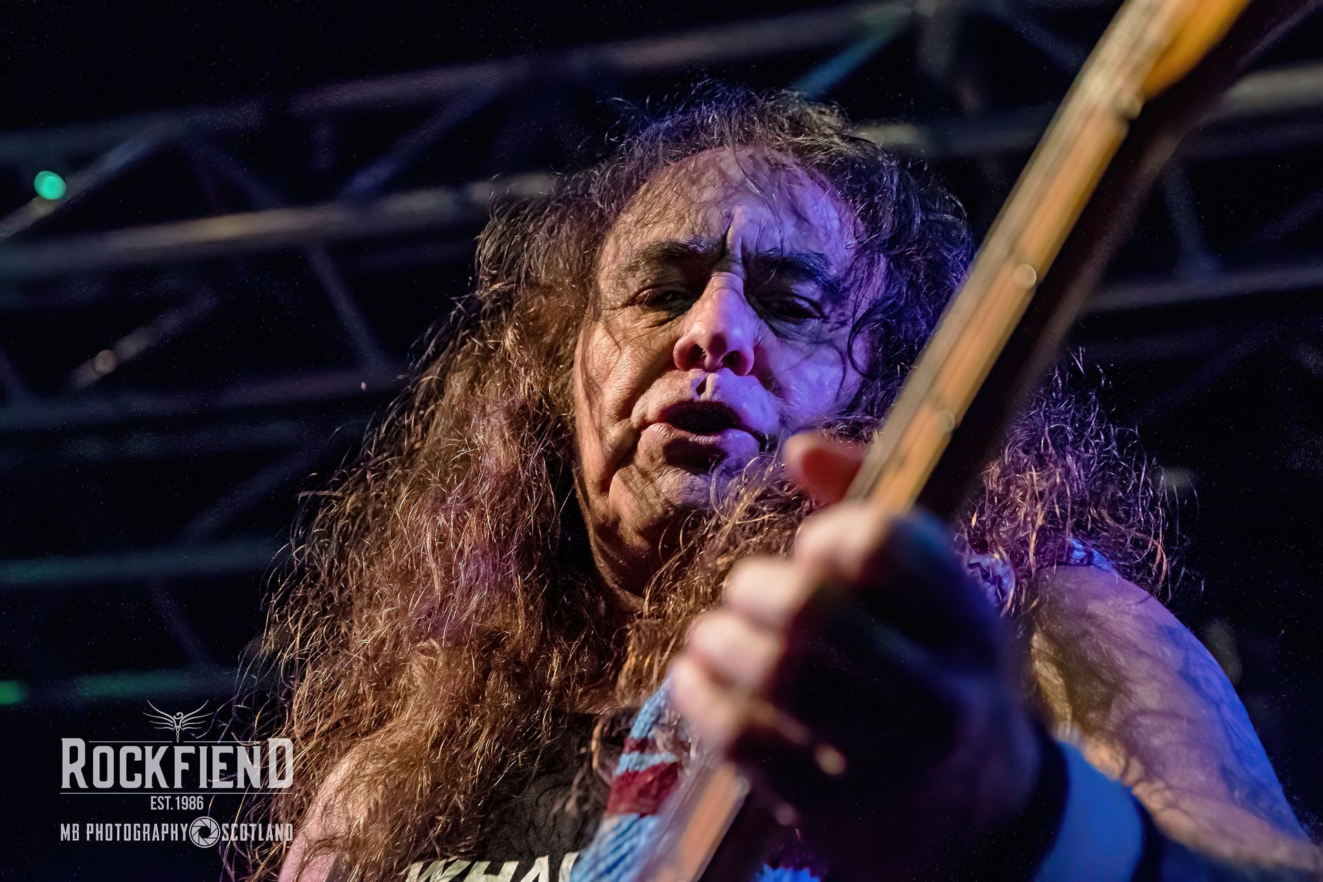 Fair play to Sir Steve Harris. It’s a cold and damp January night in Scotland and he could be back home in The Bahamas in his speedos with his butler, but instead he’s out there with his left foot on the monitor, as usual, still wearing shorts to show off his footballer’s calves, and giving every bit as much commitment as he would if he was playing at Rock in Rio with his other band.