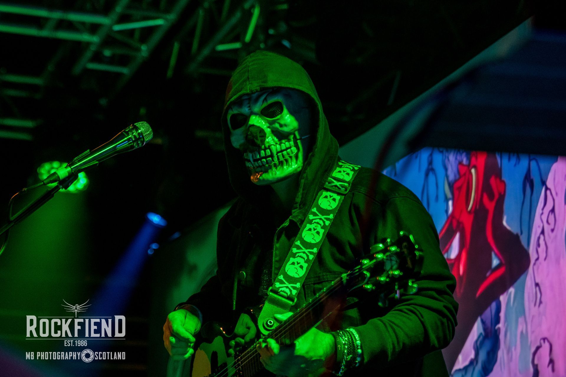 visuals are quite something. Tony himself, is an engaging and confident performer and he interacts well with a largely enthralled audience who pay rapt attention throughout. He switches between electric guitar, acoustic guitar and keyboards and at one point, is accompanied on screen by two versions of himself and at another he plays keyboards while an A.I. Tony simultaneously plays a guitar solo on screen. Some of the CGI graphics are excellent with Godzilla, JFK and a skeleton orchestra making appearances at various times. Tony has a few costume changes up his sleeve too, including a scary mask, so there is plenty going on to keep folks entertained.