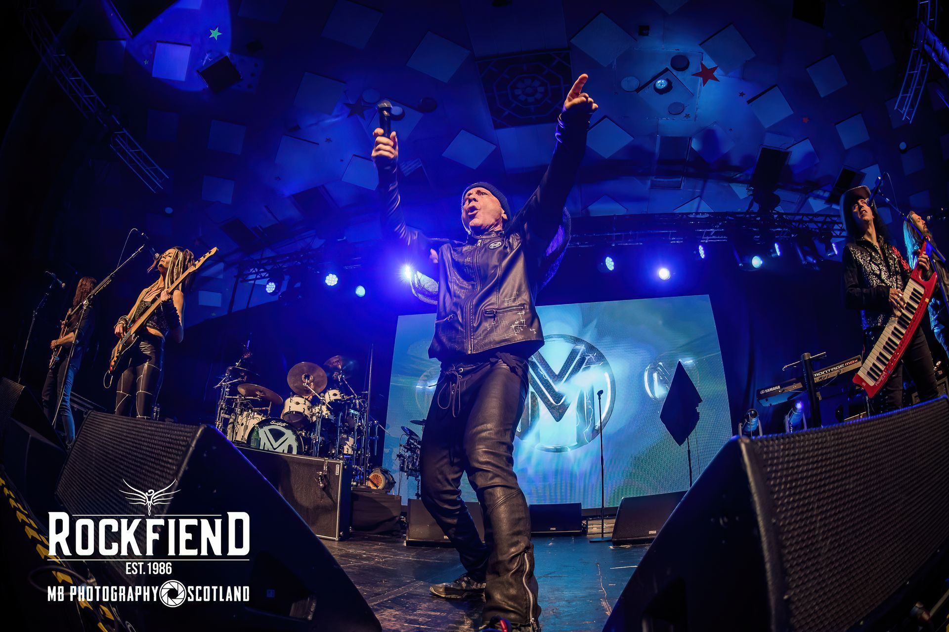 Bruce Dickinson has assembled a talented, multi-national band for this run of solo dates, with the rhythm section of Irish bassist Tanya O’Callaghan (Whitesnake) and drummer Dave Moreno (Puddle of Mudd) accompanied by Swiss guitarist Chris Declerq and LA-based Swedish guitarist/producer Phlip Naslund. The line-up is completed by an Italian, the eccentric keyboardist Mistheria. As they took to the Barrowlands stage to rapturous applause, there was a feeling that this would be a special night in the sold-out and packed full legendary Glasgow venue… and that was before Dickinson himself energetically took centre stage, sporting a leather jacket (with holes in the armpits) and a beanie hat. Feeling the cold, Bruce?