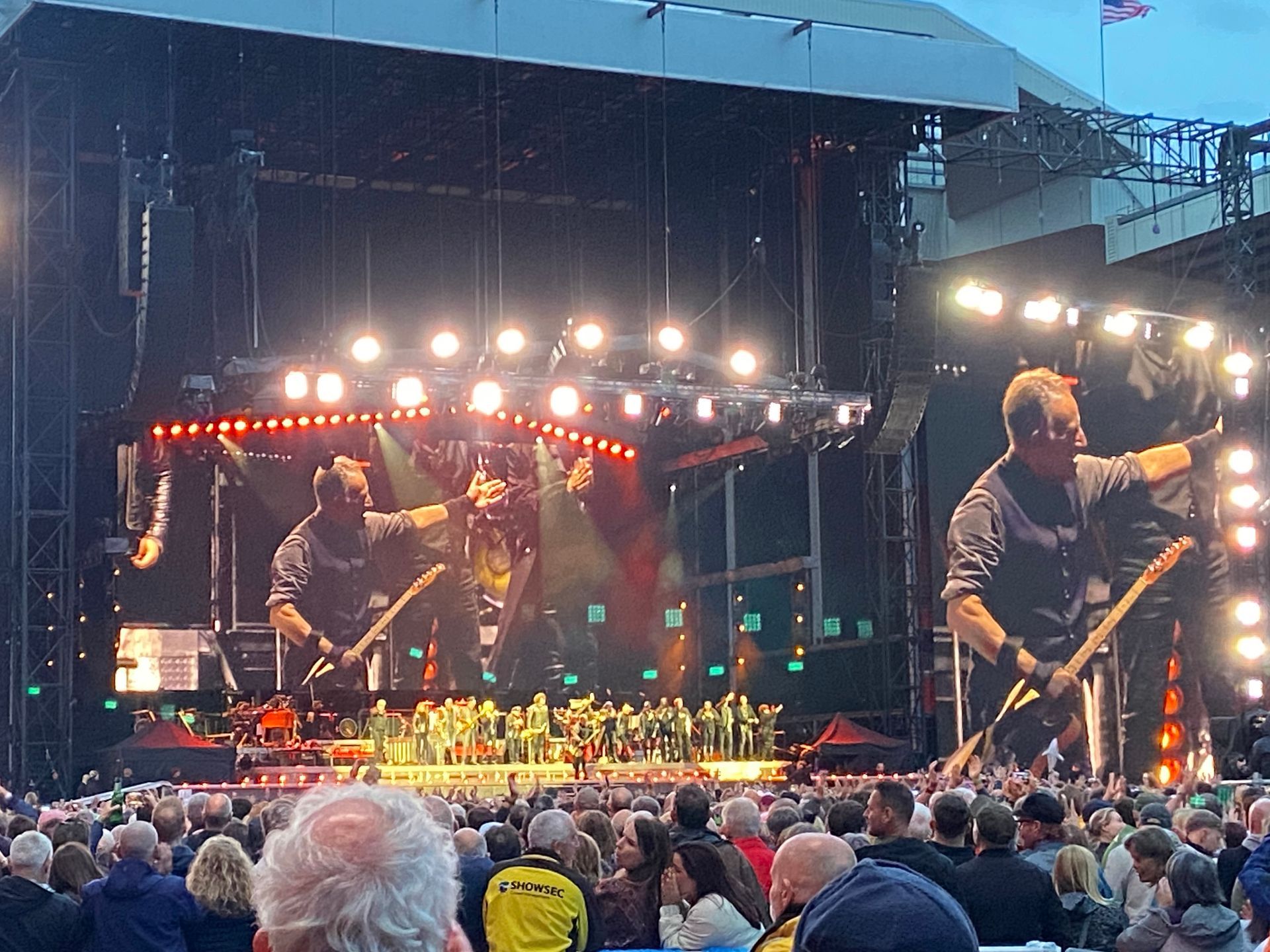 You want big songs? How about, ‘Born in the USA’, ‘Born to Run’, ‘Glory Days’, ‘Dancing in the Dark’ (one of the few songs I didn’t hear the beginning of as the wind moved the sound around the ground), ‘Tenth Avenue Freeze-out’ (complete with the band continuing to project images of Clarence Clemons and Danny Federici above them on stage long after their deaths in 2011 and 2008 respectively … once members of the E Street Band, always members of the E Street Band) and their gloriously goofy ‘Twist & Shout’.