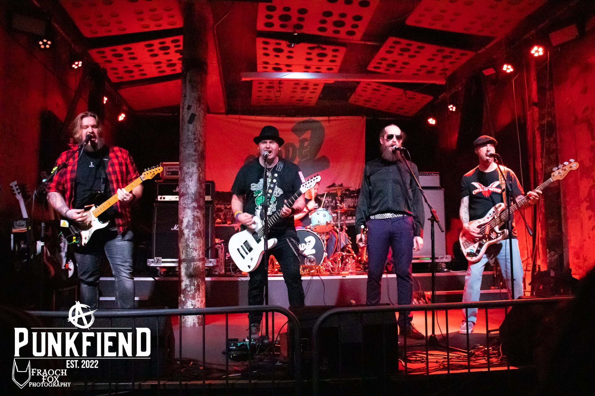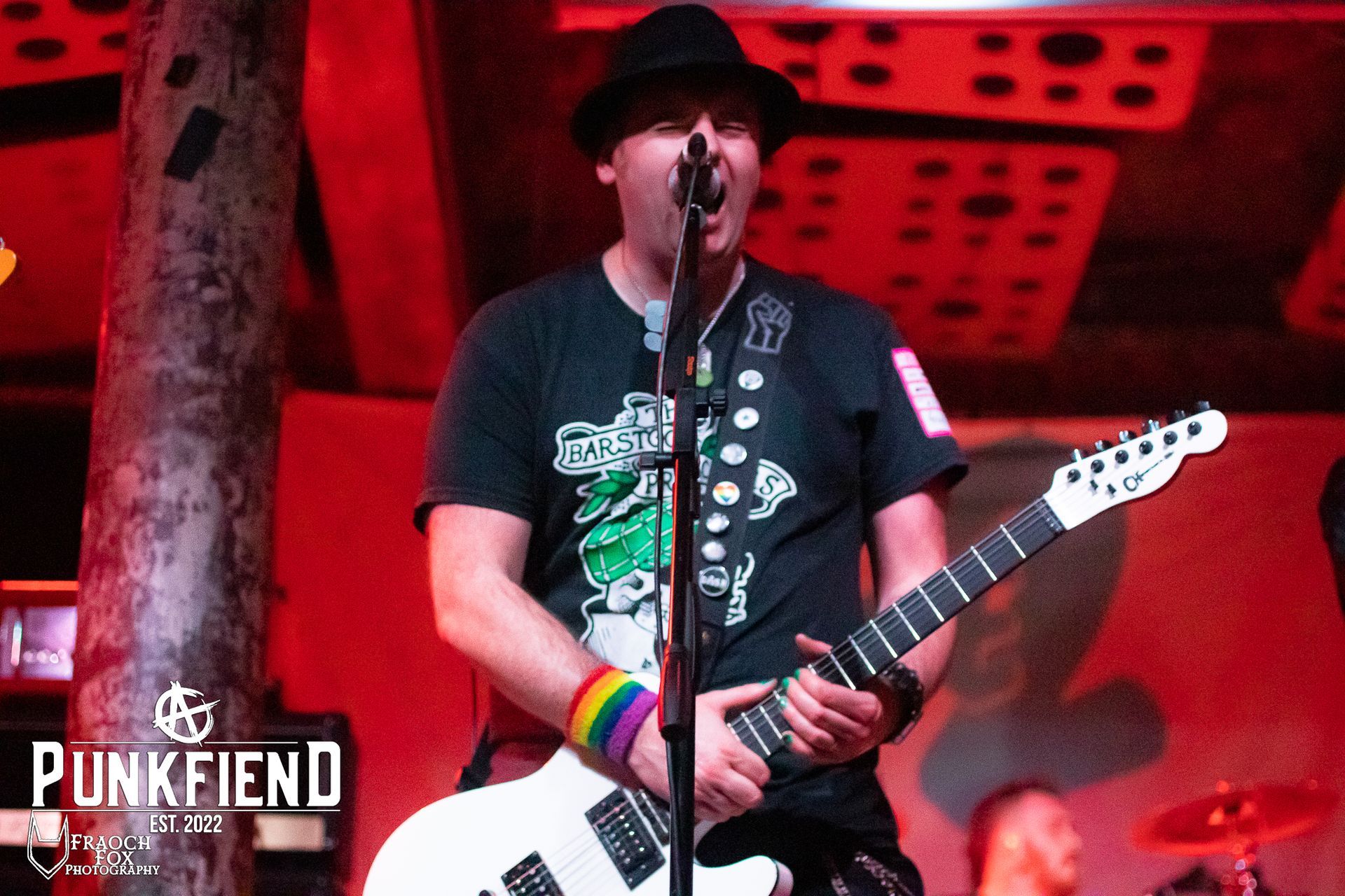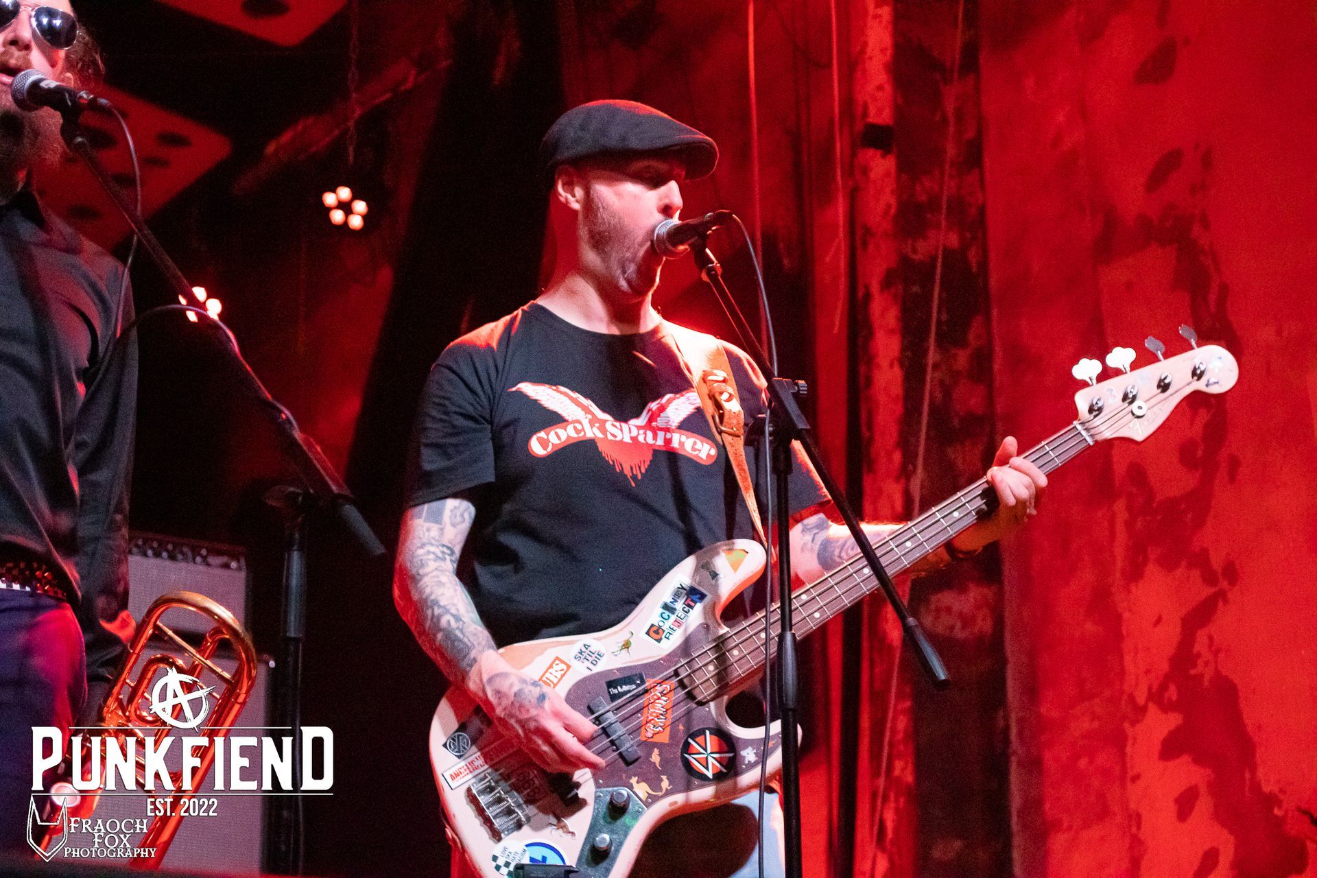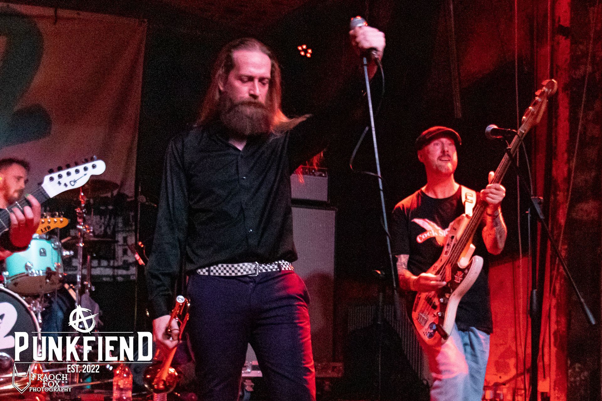 First on the bill are Glasgow based five-piece The Guillotines consisting of: Micah – vocals/lead guitar, Steve Oi! -vocals/bass, John vocals/guitar, Davie Snakes – vocals/trumpet/trombone and Andy – vocals/drums. Despite taking the stage shortly after doors opening there is a substantial crowd considering it’s a Monday, perhaps showing their home team advantage, but any thoughts that locality is their draw is immediately dispelled as the they punch nosily into the room with amazing energy, setting the tone of an excellent evening. They’re set is tight, it’s clear they are seasoned musicians, who are not just comfortable, they are in command. The Guillotines breathe life into the crowd, bodies moving and shouting back enthusiastically to their interaction. This fast-paced Punk Ska is exactly what we all came here for. 'Bojo The Clown’ clearly a favourite with the crowd poking fun and a finger at our former prime minister, a comical if grim reminder of the world out with and of Punks place in it.