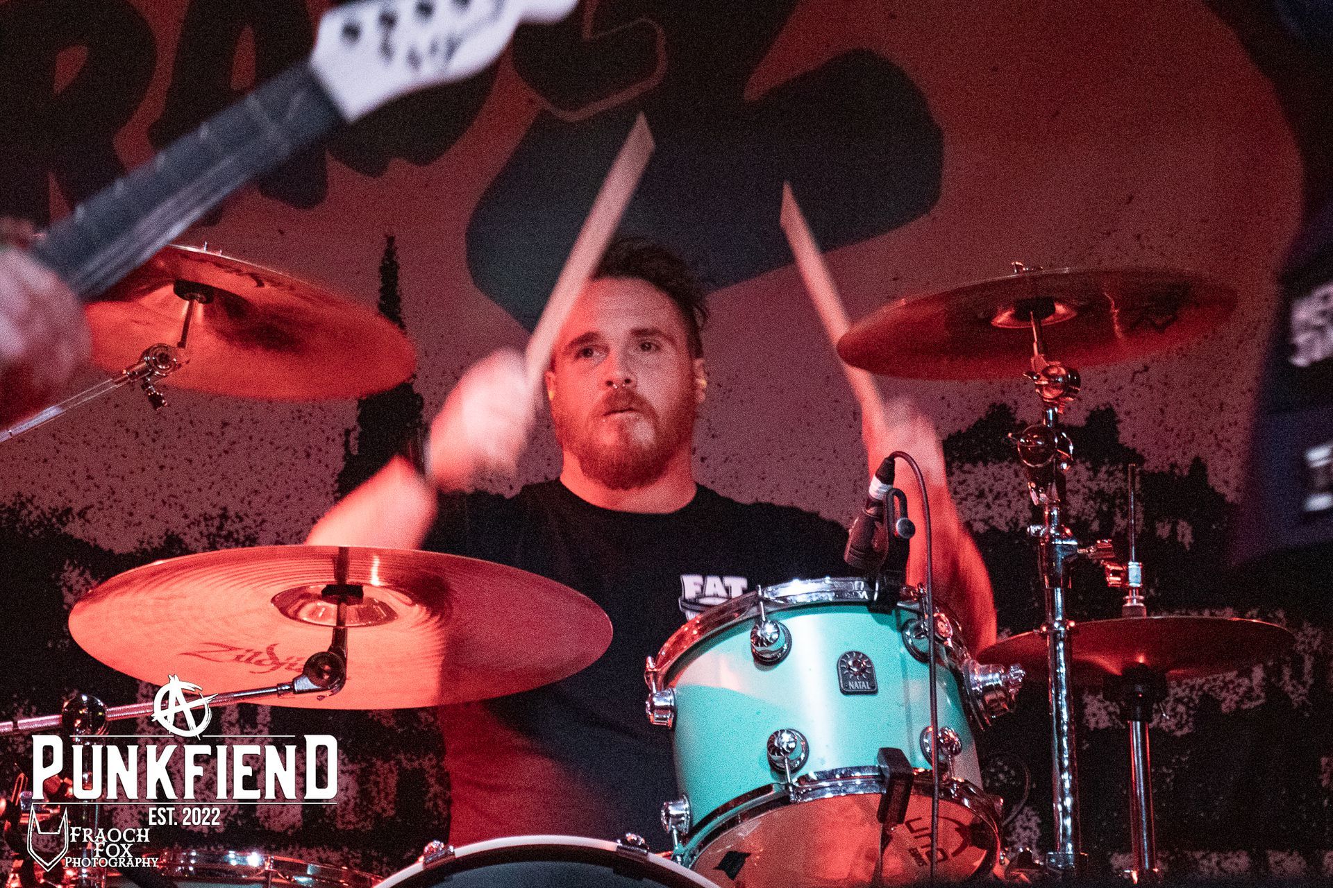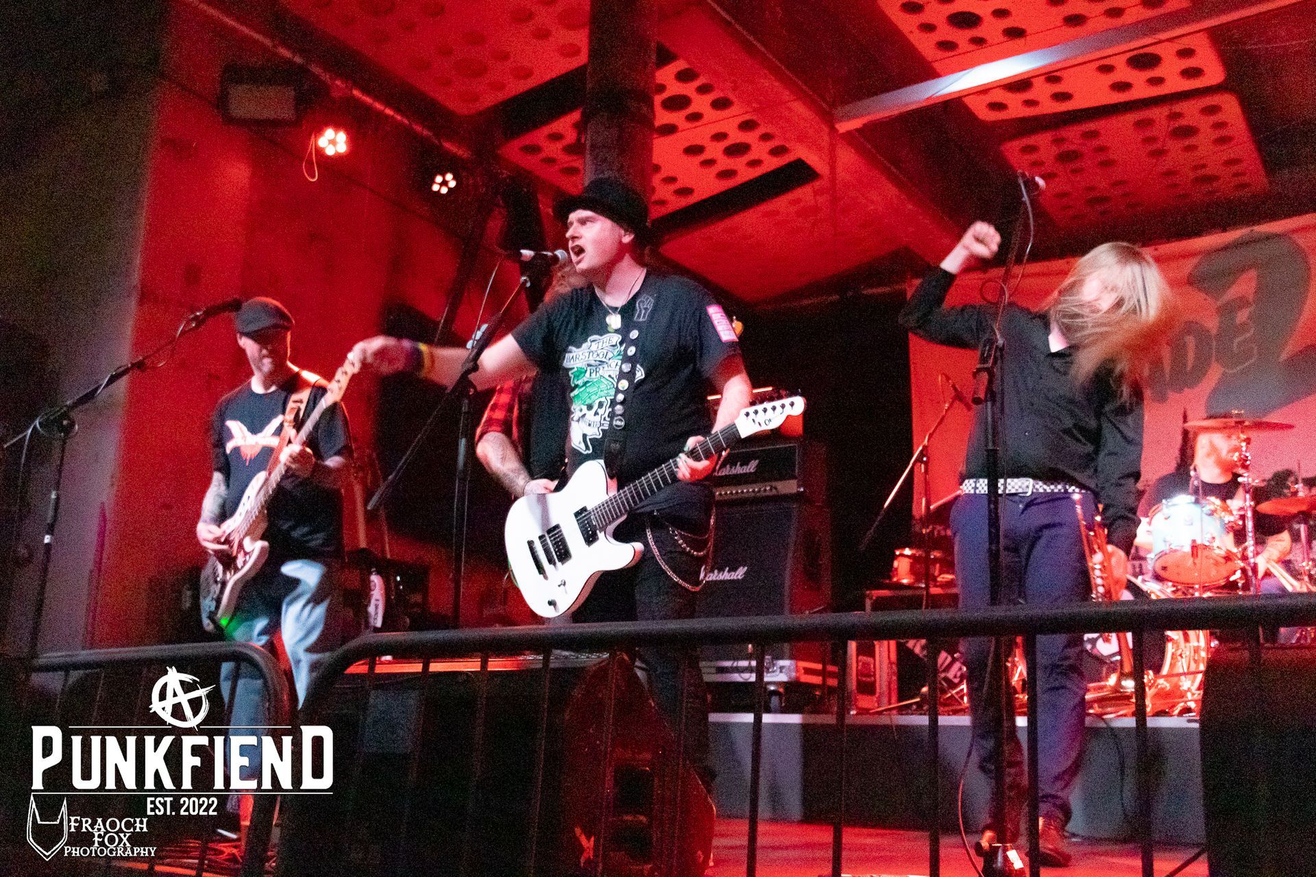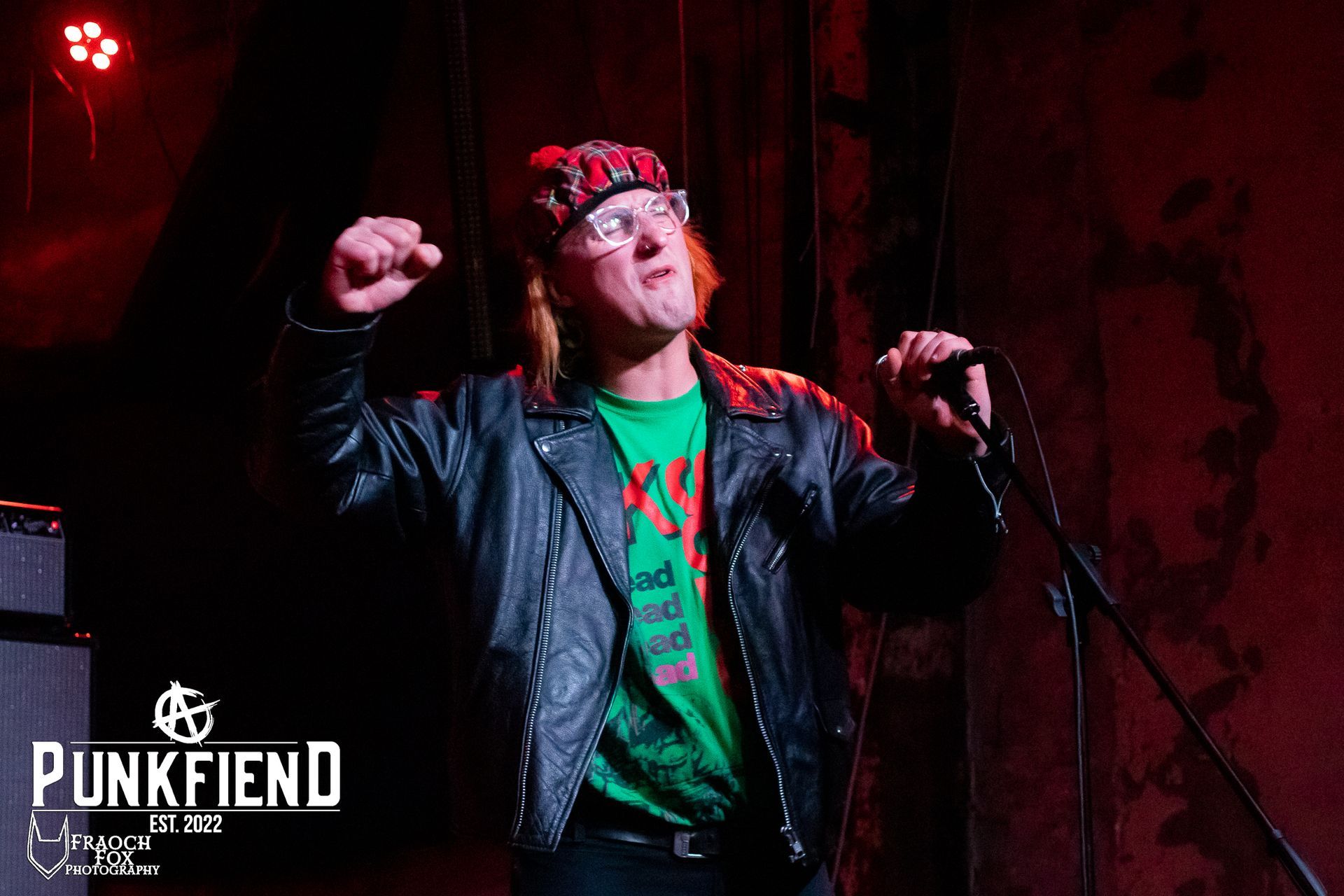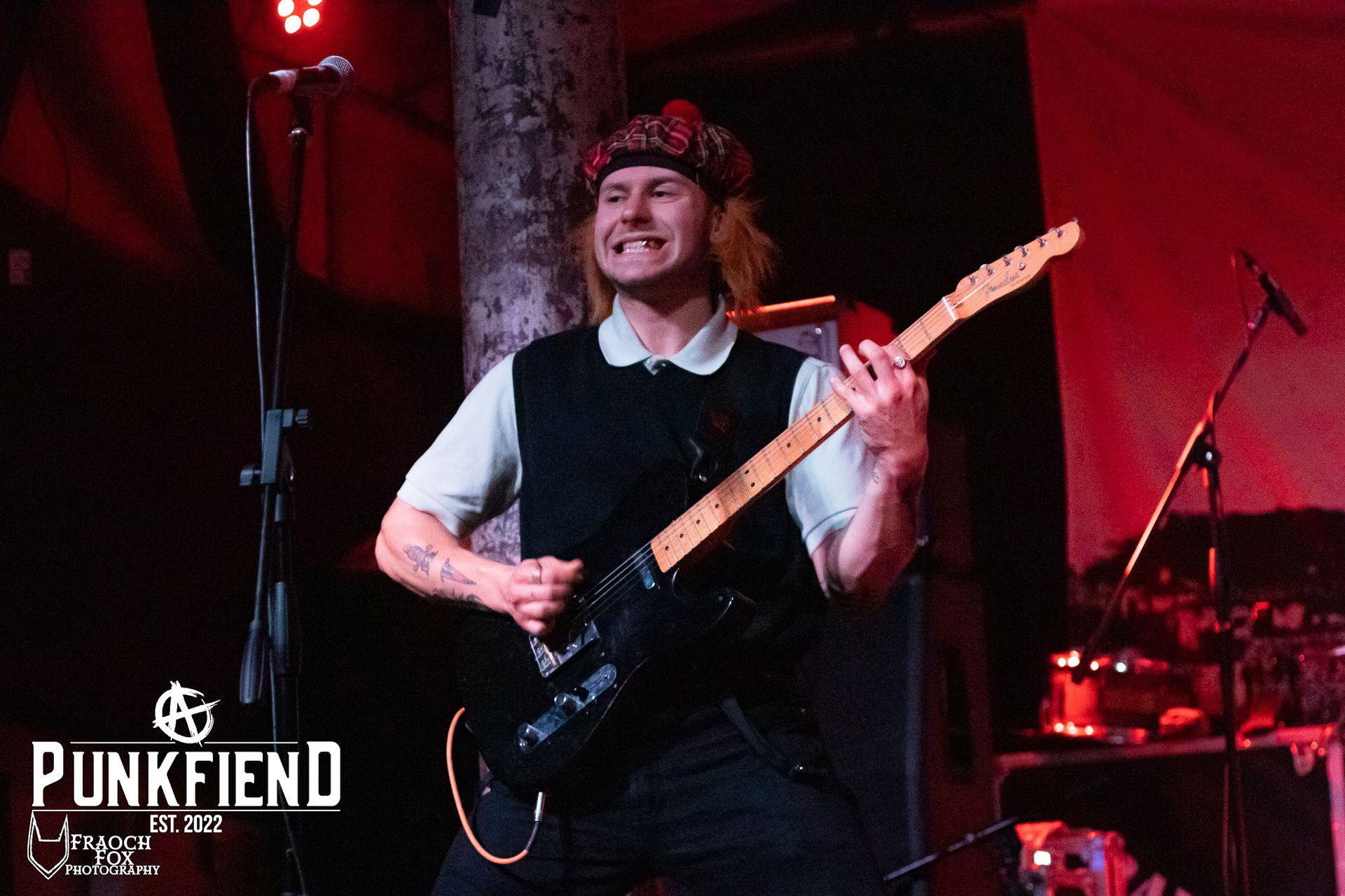 Next up the Slobheads, London based duo, who are a trio this evening. They pick up the riotous pace lain down by The Guillotines, with giddy joy and a cheeky glint in their eyes, a great stage presence which guitarist/vocalist Harry Jarvis never drops throughout. Wearing matching ‘jock caps’ which look so at home with their schoolboy punk aesthetic that I honestly wish was part of their usual stage attire and thought was until drummer Macey Sherman removes theirs most probably overheating from they’re frantically fantastic thrashing. There is a little timidness to newer recruit vocalist Ross, it wains as the set batters on, his pint is drained and his confidence increases, seemingly coming to a crescendo as a mic is freed to increase thrashing mobility at ‘Satans Guffs’ through which they give it their all, ready to submit to ‘times up’ however Macey relays there’s time to spare! A surprise to the rest of the band and what seemed to be an end is instead a renewal as they launch with vigorous delight into a few bonus tracks which the audience receive happily.