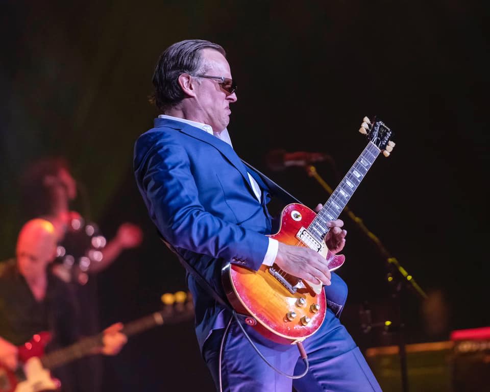 Joe doesn’t waste time between songs and choreographs the start and finish of tracks with a raised hand or nod to drummer Anton Fig. You can see the enjoyment in the faces of the band with horn section Lee Thornburg and Paulie Cerra exchanging jokey signals with backing singers Jade MacRae and Mahalia Barnes. At the front of the stage, bassist Michael Rhodes steps forward to share some of the limelight whilst keys player Reese Wynans is apparently having a ball especially when duelling with Bonamassa.