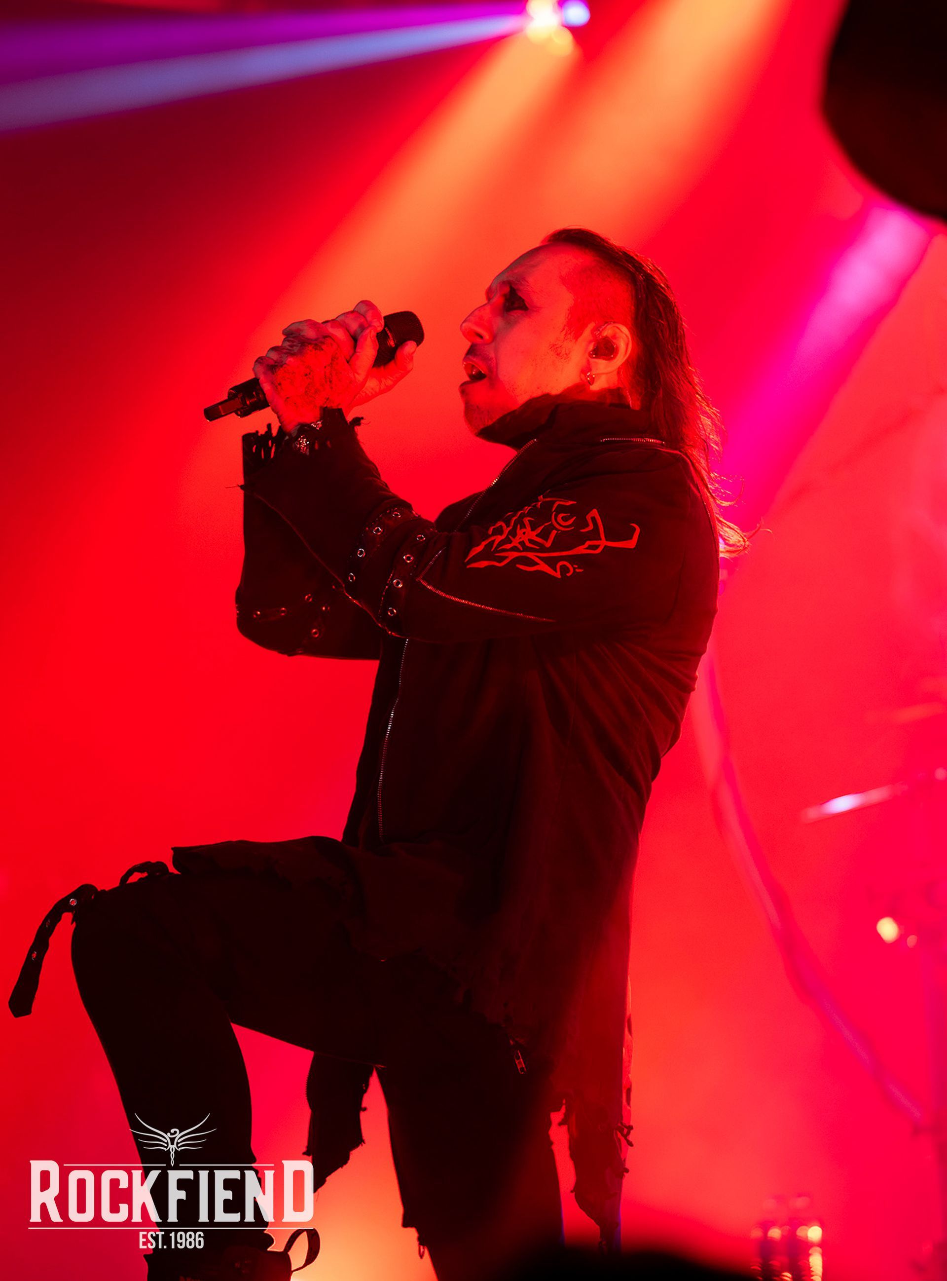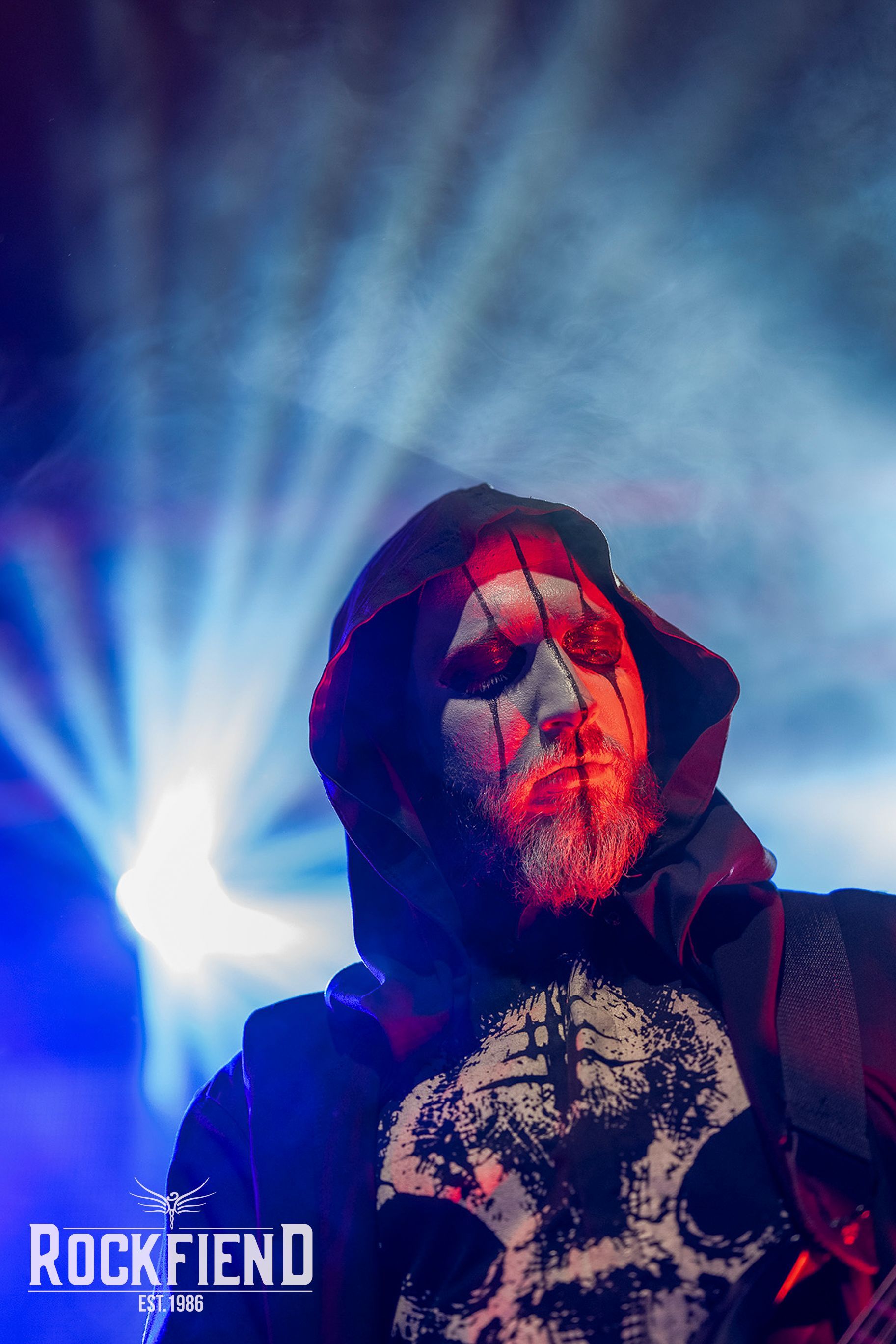 Musically, Richards drumming was absolutely off the scale laying down a relentlessly heavy and fast tempo; during one instrumental break, he rose from his kit, strutting and aggressively gesturing for the audience to scream louder. Meanwhile, Marco Coti Zelati, sporting striking white zombie-like face paint complete with a visible brain and a manic grin, was visibly lapping up the cheers, embodying the raw visual spectacle of the performance. Every chord from his bass was felt deep in the chest, proving that the band was totally killing it, making this mid-week show one of the liveliest the packed venue had seen.