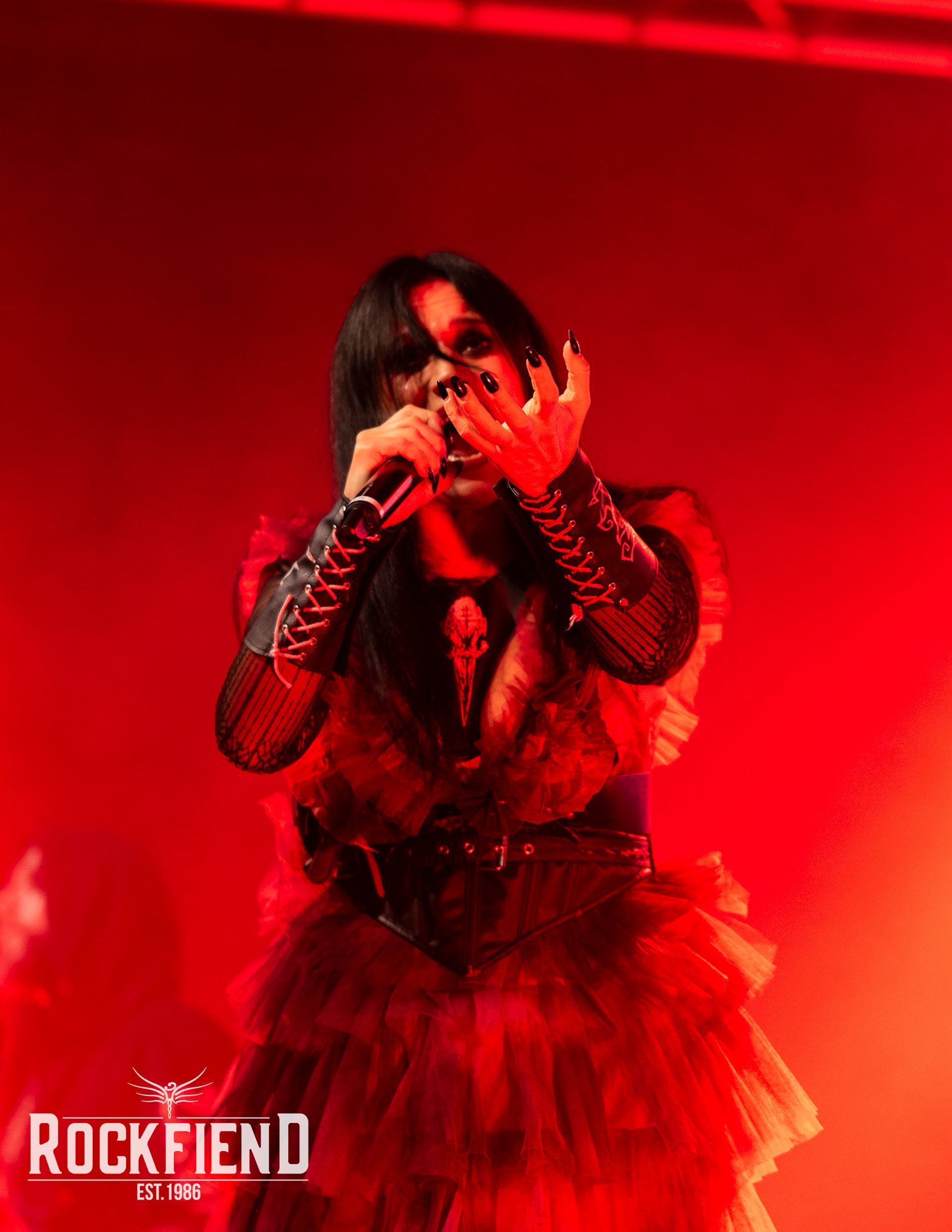 The set began with a heavy blast, opening with "Layers of Time" where Andrea Ferro's intense screams pushed the Gothic metal into the realm of Metalcore. This grime was instantly purified the moment Cristina Scabbia's incredible voice soared in, delivering a counterpoint of stunning clarity and purity. The energy peaked after the second song when Cristina addressed the capacity crowd, introducing the Lamb of God's vocalist, Randy Blythe collaboration, "Hosting the Shadows,". Obviously he wasn't going to make an appearance but Andrea replacing him was seamless.