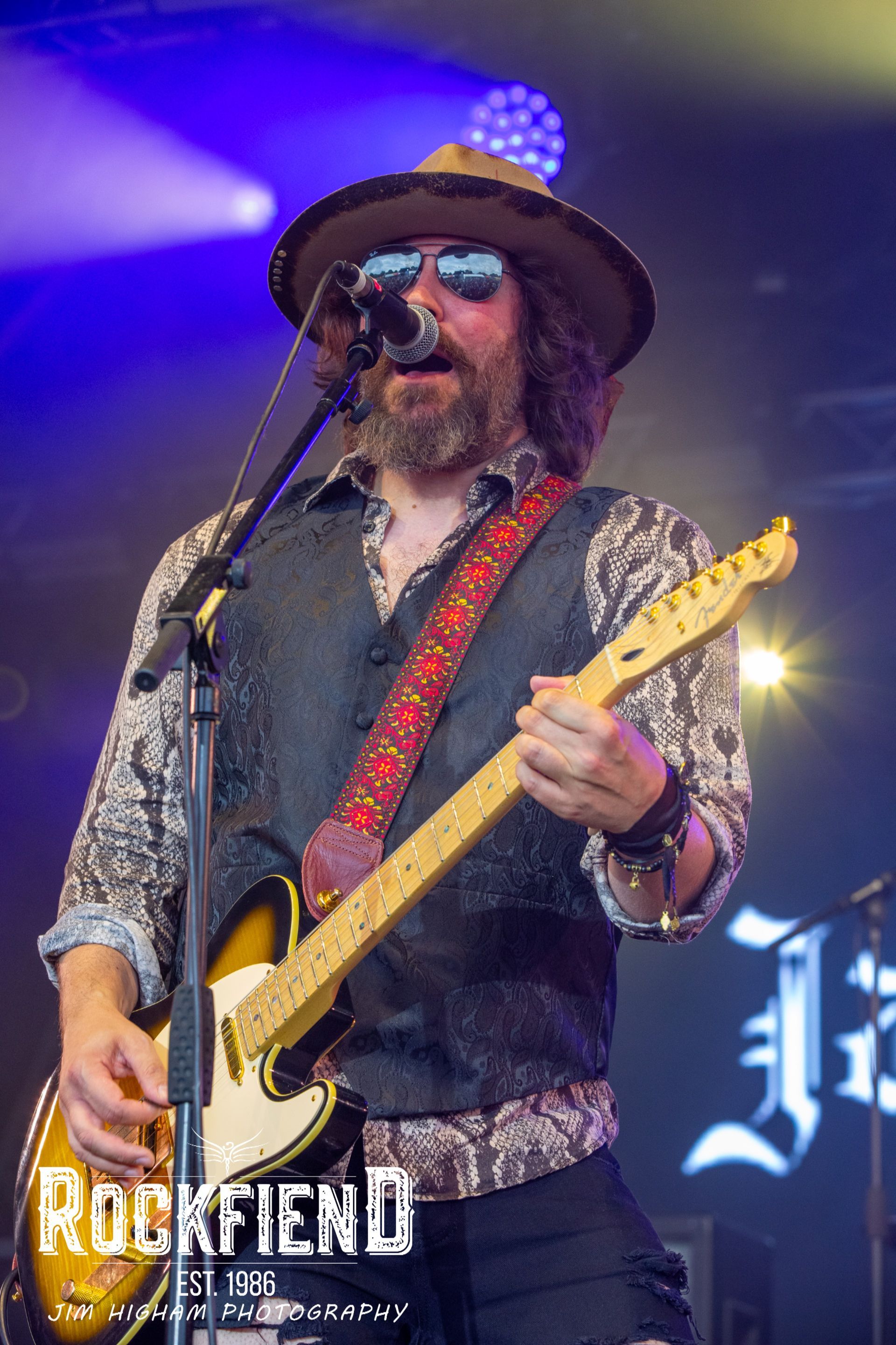 Well, the sunshine was nice while it lasted, but it’s raining in Maidstone this morning. Jack J Hutchinson graciously accepts that it’s probably his fault, given it was raining the last time he played in Mote Park too! It hasn’t deterred him, or his band from optimistically donning their sunglasses and fedora hats, and thankfully it hasn’t deterred the crowd from turning up early either. ‘Don’t Let the F****** Get You Down’, starts the day right, an appropriately loud middle finger to anyone who makes you feel unworthy. The big riffs of ‘Constellations’ and ‘Days are Gone’ are an excellent antidote to any fatigue, and augmented today by additional guitarist Ash Wilson filling out the sound. But it’s the gentle ‘I Will Follow You’ that hits the hardest and results in the first major singalong of the day, a moving reflection on Jack’s father’s battle with Alzheimer’s.
