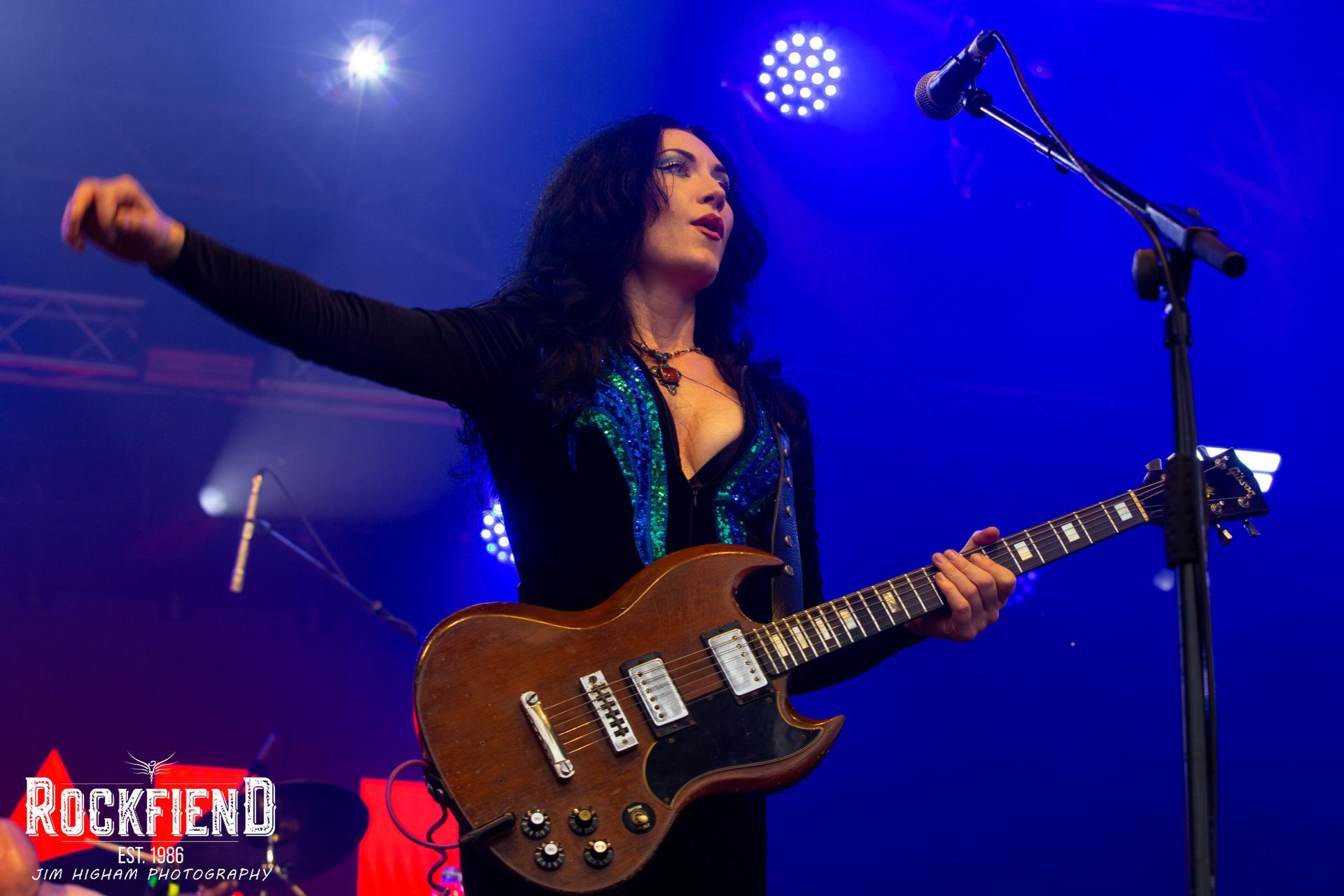 There seems to be a lot of excitement around guitarist Sophie Lloyd, hopefully the result of her incredible proficiency as a musician and not just because she looks good in very little clothing! In any case, it’s encouraging to see a female guitar hero getting some attention, and slightly baffling as to why there haven’t been more over the years. Joined on stage by singer Marisa Rodriguez, the duo make a fabulous pair, both masters of their art. Nathan James takes over on vocals for an epic ‘Fall of Man’, but it’s the appearance of Black Stone Cherry’s Chris Robertson for ‘Let it Hurt’ that triggers even those who haven’t been paying much attention to run in for a better look. I’m very impressed by an instrumental ‘Thunderstruck’, Lloyd demonstrating that she can shred with the best of them.