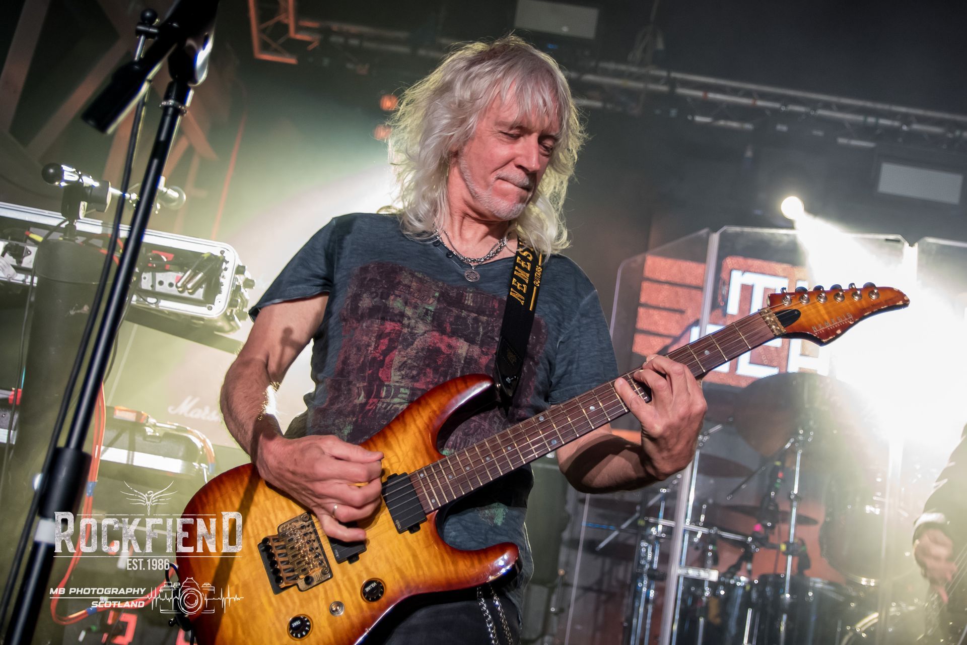 Steve Mann (rhythm guitar and keys), Barend Courbois (bass) and Bodo Schopf (drums) all deserve a mention too as they were rock solid throughout. Each were given opportunities to shine during the show. In fact, Steve even had the first solo in the first song! Unfortunately Bodo was hardly seen as the lighting in the venue barely showed him other than at the end of the show when he did get a moment in the limelight bringing a song to and end with a short but tasteful drum crescendo.