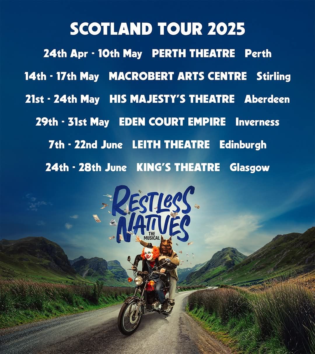 Having debuted in Perth, ‘Restless Natives – The Musical’ is on a limited run right now around Scotland, including dates at the re-vamped Leith Theatre in Edinburgh and Glasgow’s King’s Theatre. With warmth, humour, poignancy, good music and likeable characters that you can root for, this show is a delight.