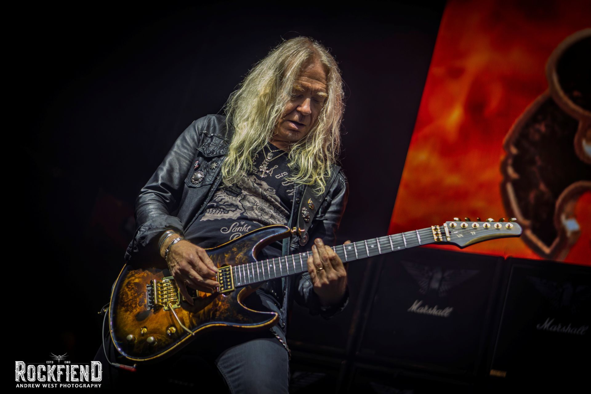 As the lights dim that iconic riff from Balls To The Wall kicks and the its clear a good percentage of those in attendance are fully aware of this album. UDO takes the stage complete with the white gloves he wore on the original Balls To The Wall tour and his trademark camo jacket. Its hard to imagine that the combined age of both of tonight front men is 147 years, UDO is 73 and Biff is 74, that matters not a jot as neither have lost their voice in the slightest. UDO growls his way through the iconic hits from the album, London Leatherboys, Head Over Heals, Love Child, Losers and Winners and finishing with the slower Winterdreams. An encore is inevitable and we get the German folk music intro to Fast As A Shark, Its a properly heavy tune and the crowd sing along loudly before the Germans take their leave with the gigantic inflatable Dirkschneider balls still bouncing around the arena.