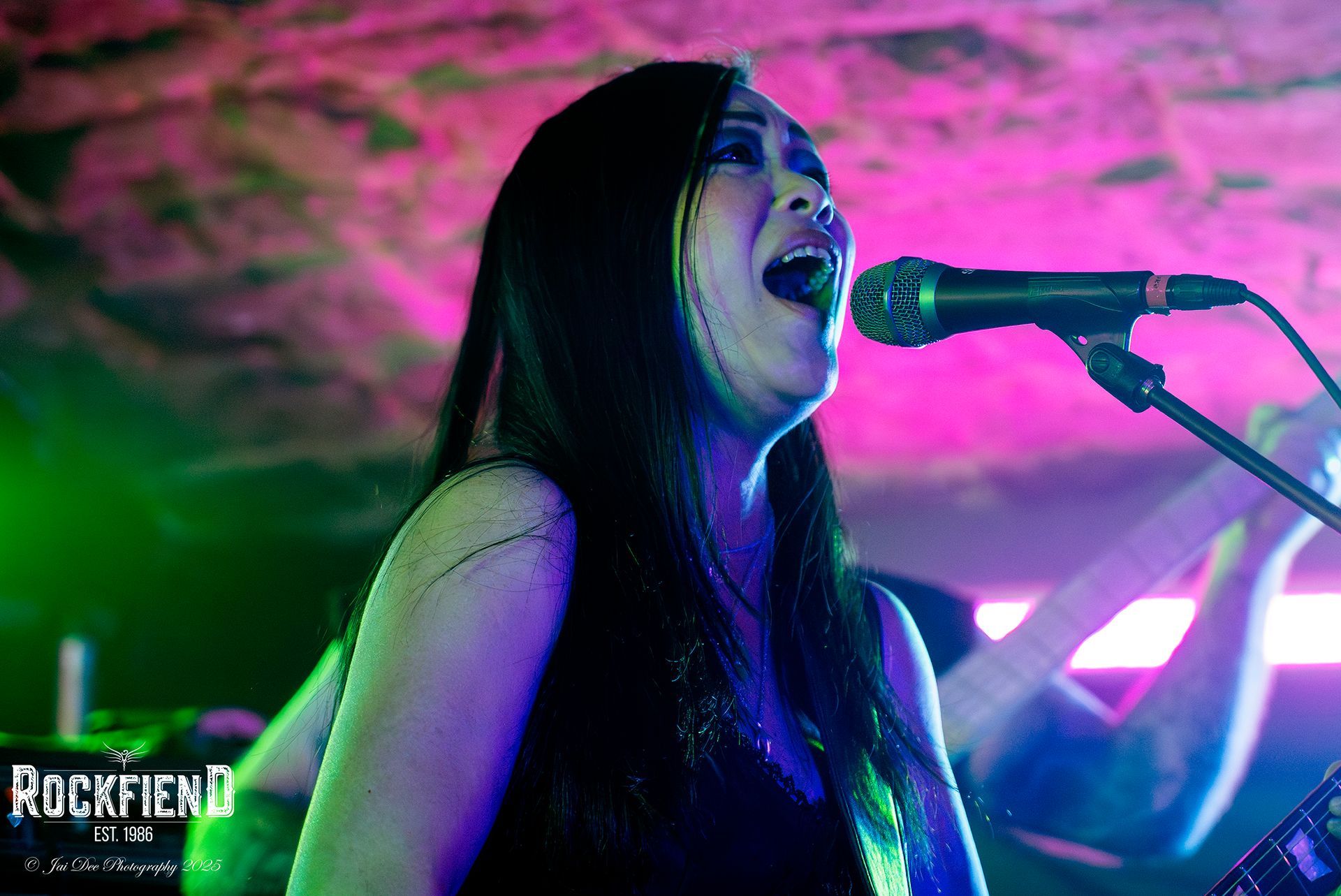 Jeanice is rather petit in size, but the power from her vocals makes tonight's crowd take notice. In the photos, it looks like Jeanice has several guitar changes, however, she uses one, which has a metalflake paint, which like some car paints, changes colour when the light changes direction. The band have a five song set "Overhaul", "Walk Away From Me", "Displaced", "Cradle To Grave", which will be the bands next single, and ended with "Gone Too Soon". I have to mention the last two songs, for me, they were two very emotional songs, "Cradle To Grave" is about the devastation of war, and living through it, well that's my take on it, I actually had goosebumps with this one, "Gone Too Soon" is self explanatory, a song about loosing someone!