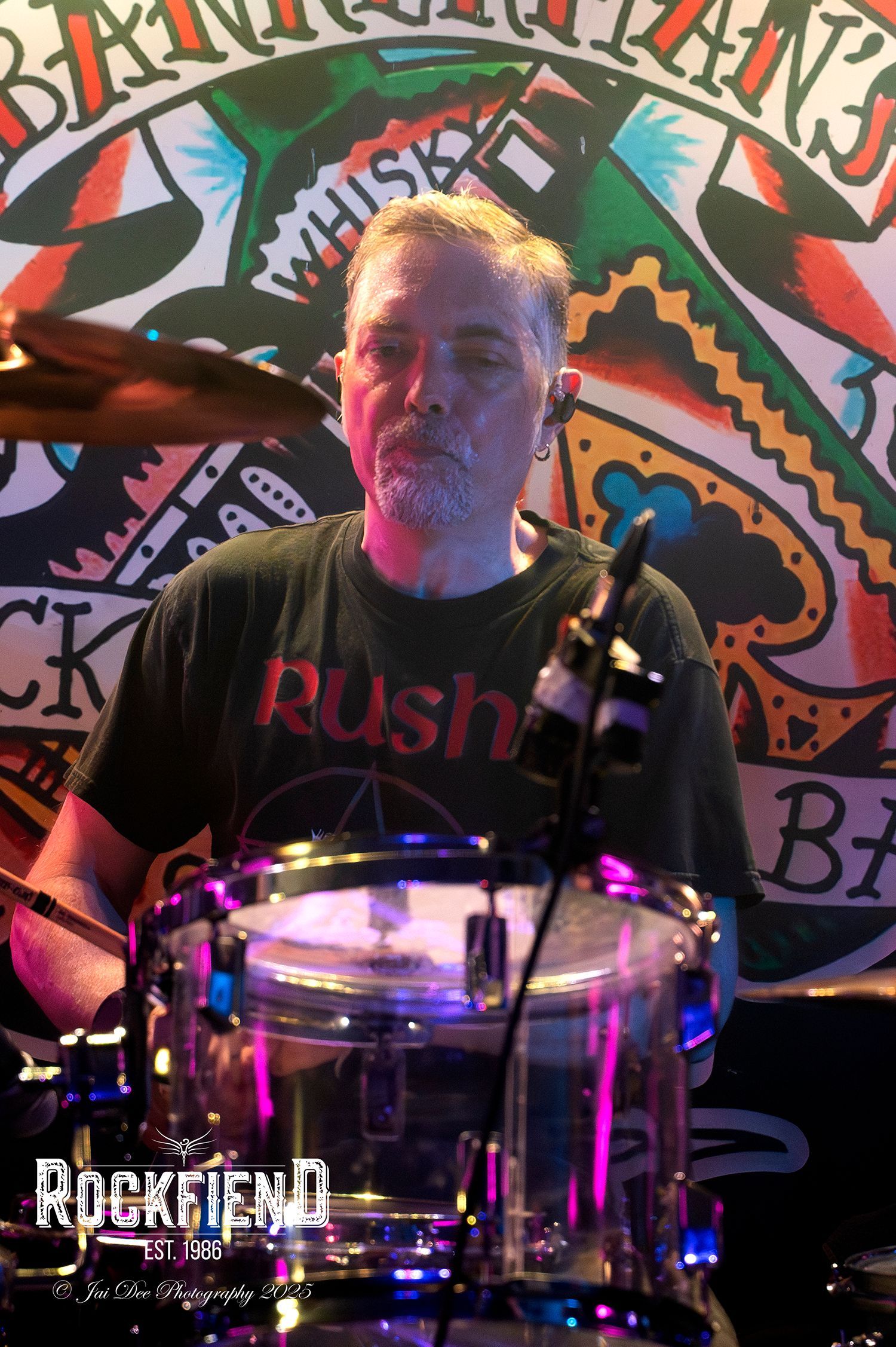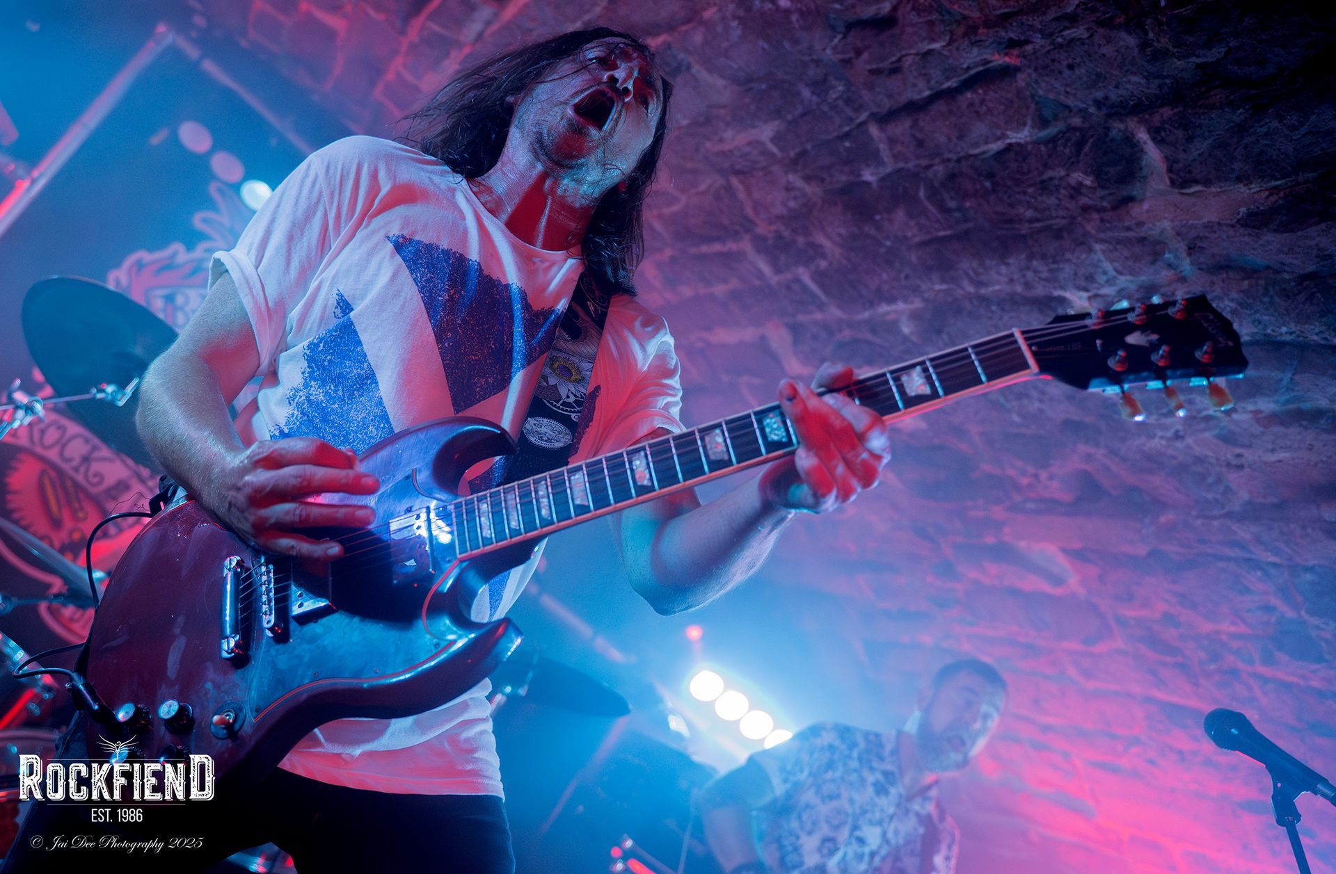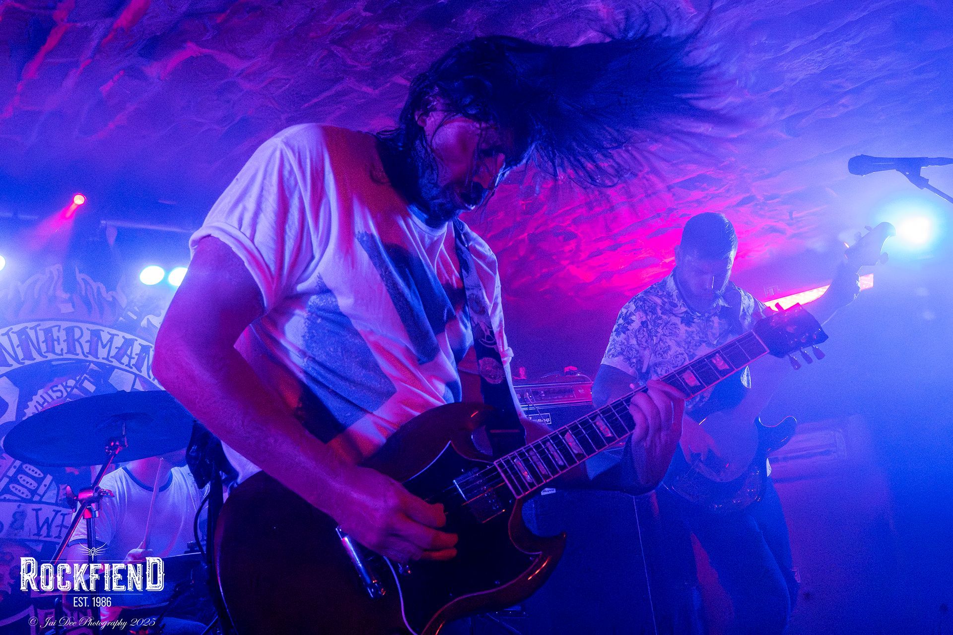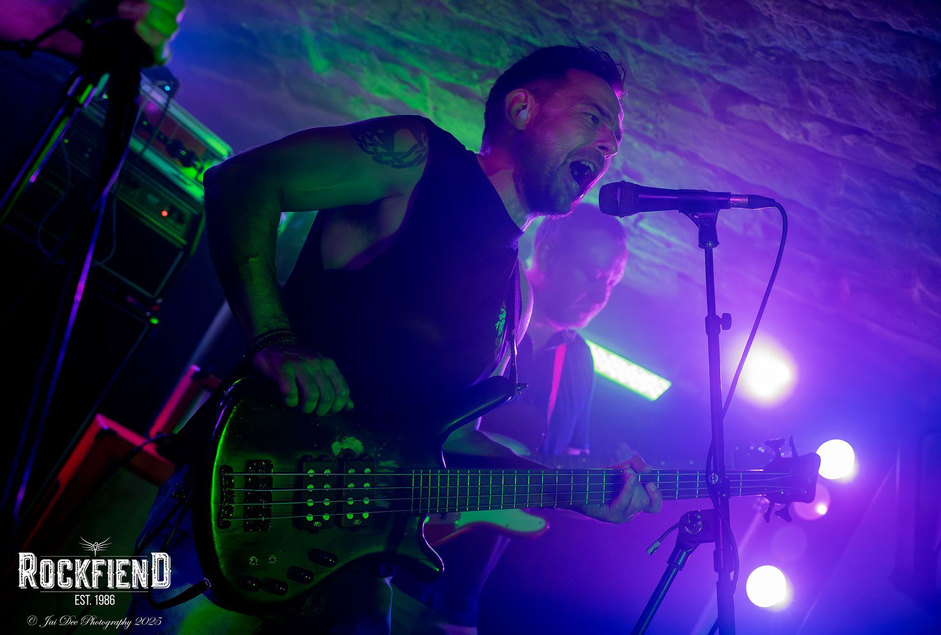 After The Number 9s finish their set, there is a mass exodus, to the bar, the loo and or smoke break? Which actually makes the changeover a lot easier, and quicker. DeadFire are up next, a band I have shot and reviewed several times, so by now, you should have a fair idea of what is about to happen. Charlie enters the stage clutching a bottle of cough mixture instead of his usual Jack & Coke, he announces to the crowd that he's "nae feelin weel" An early excuse of a poorer performance maybe? Oh hell NO! The only difference in Charlies performance was that he wasn't as mobile about the stage as normal, but that could have been down to five guys on the stage to their previous four, and the Bannerman's stage isn't as big as some of the stages they have played before, or just because Charlie was actually ill!