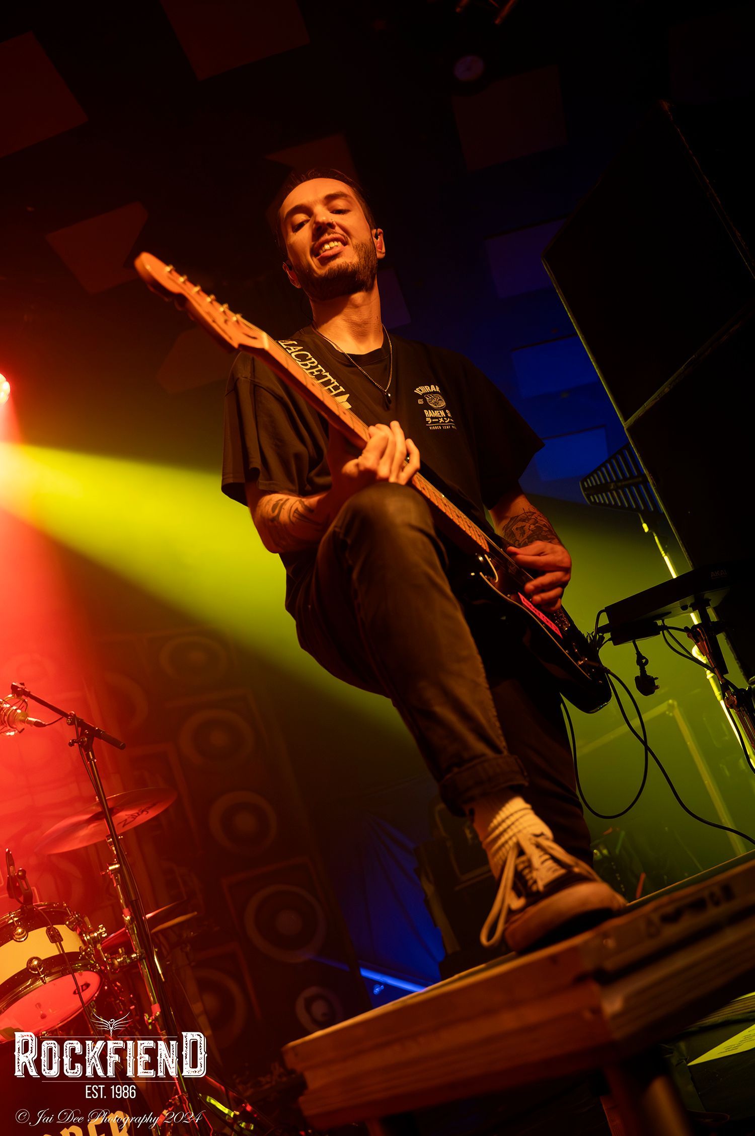 North Atlas arrived onstage accompanied but what initially, and confusingly, looked like dancing trees of some kind. But it soon became clear that they were indeed pagan-style performance artists, creating images through dance that enhanced the live music. The alt rock quartet wasted no time showing the audience exactly why they are gaining such popularity with a dark, heavy and highly cinematic performance that musically sits somewhere between the metal Scottishness of early Biffy Clyro and the electronic industrial sound of Nine Inch Nails. It’s a unique sound, with singer Leon Hunter’s vocals a mix of Type O Negative’s Peter Steele and Biffy Clyro’s Simon Neil. It was an assured performance of light and dark textures (if that makes sense!) with a definite kind of pagan/heathen mood that provided an almost menacing feel. North Atlas released their latest single ‘Dead Tree’ last week and will be headlining Glasgow’s Cathouse in early 2025. On this showing alone, I feel a few tickets will have been sold!