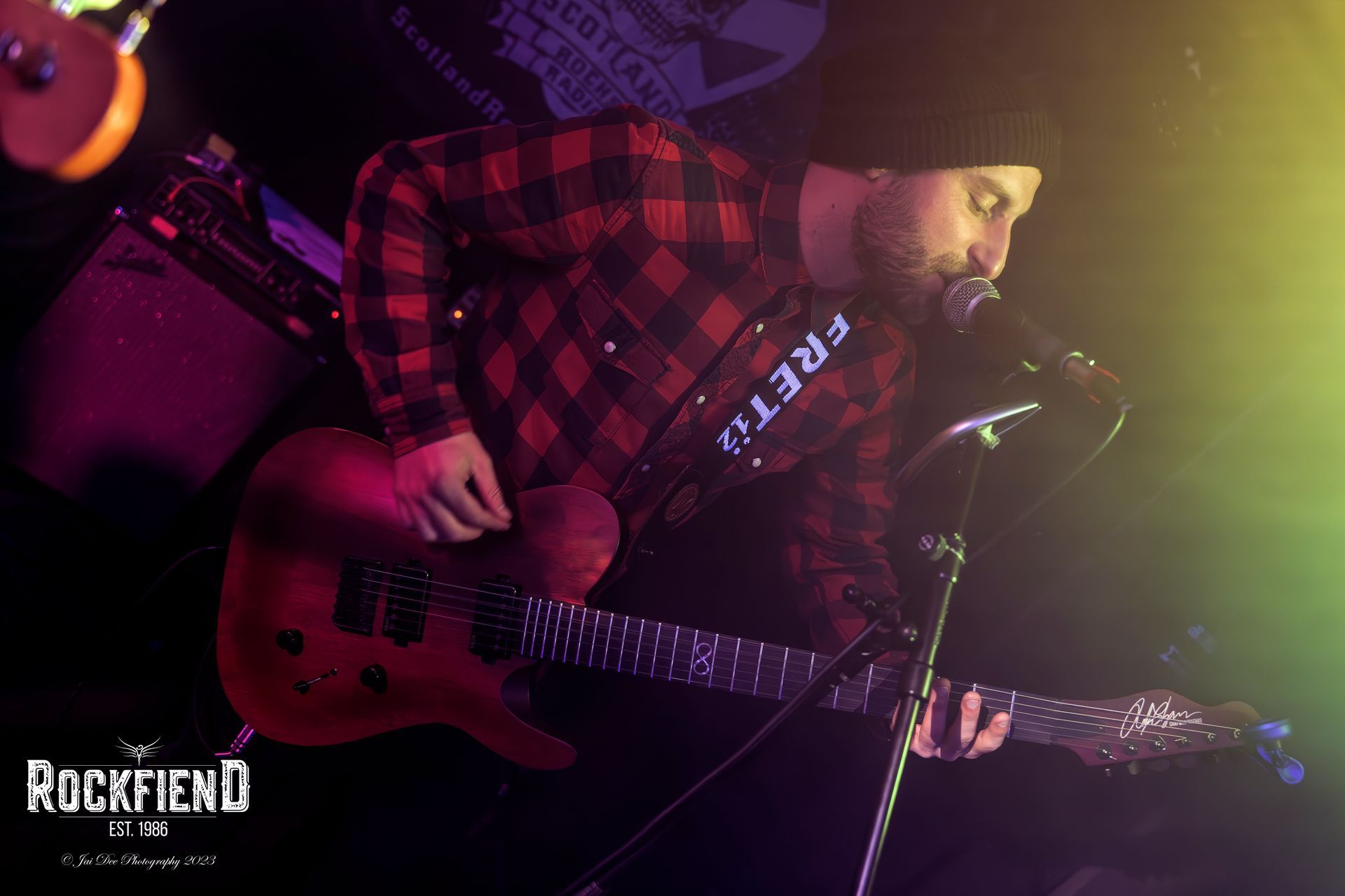 To open the festivities, it was to fall to Dundee heavy metal band and Metal 2 the Masses Scotland finalists, Volcano X. However, most of the band picked up a virus over Christmas, but fear not, the one remaining fit member J.P was able to come along and play a solo set. Now I don't care who you are, if you are not the front man/woman of a band, it cannot be easy to stand in front of a sold out venue and not feel nervous, but not to worry, after the encouragement from the crowd, J.P nailed it!