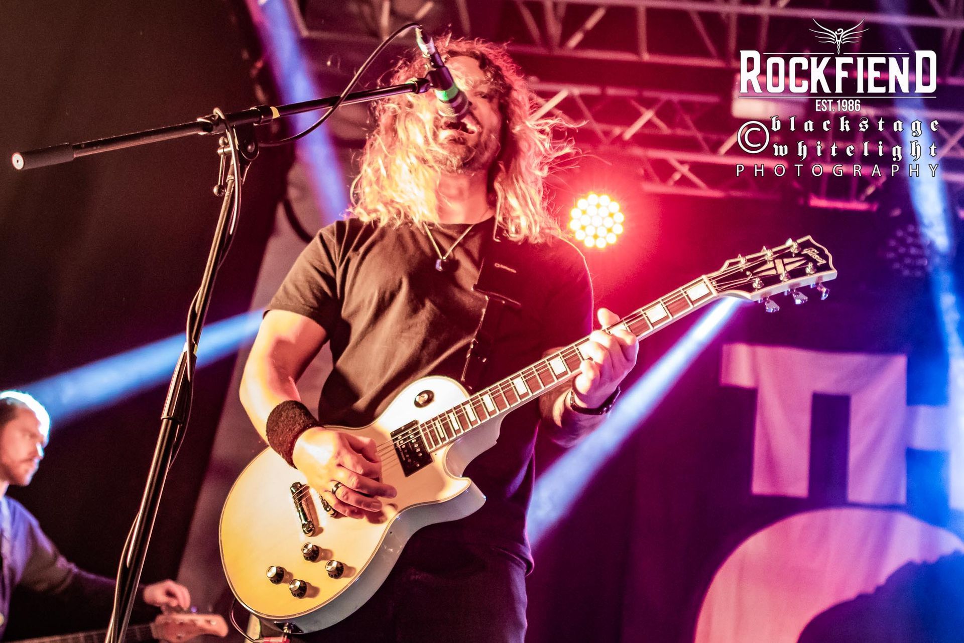 The riff heavy ‘Go Get It’ from sophomore album Point of No Return was next up, with Shane jumping enthusiastically from the elevated ramp whilst Lloyd Wood strolled across the stage, engaging with the audience at every opportunity. I mentioned in a previous live review that guitarists “Shiner” Thomas and David Winchurch choose to be more static whilst performing and that remains pretty much the case. But this is a band where it’s all about the music and connection with the audience through the music, with no need for over-the-top stage antics or overly long guitar solos. This connection was no more apparent than when “Shiner” played the unmistakeable opening riff to the anthemic ‘Rock ‘n’ Roll Ain’t Dead’ (are you listening Mr Simmons????), a clear fan favourite that does exactly what is says on the tin; encouraging mass audience participation with a pulsating rock song that very much proves rock is alive and well! Superb stuff!