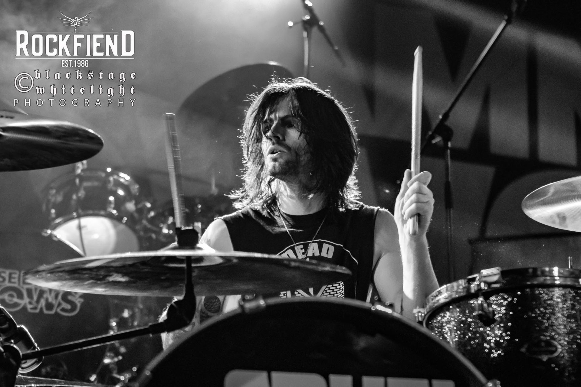 The heyday of the once obligatory instrumental solo is probably now long over as they can be a bit of a hit and miss at shows, with many punters using it as an opportunity to head to the bar for a drink rather than listening to 5 minutes of shredding guitar. But Those Damn Crows turned the solo part of a show on its head, allowing Lloyd and Ronnie to showcase their talents on bass and drums respectively. It was an incredibly refreshing rhythm section jam that I don’t think I’ve seen before and both looked as if they were having a great time, with Lloyd managing to kick his leg out at right angles in impossibly tight jeans! The solos led perfectly into the moody and menacing ‘Waiting for Me’, slightly less melodic than what had gone before and bringing a different vibe to proceedings.