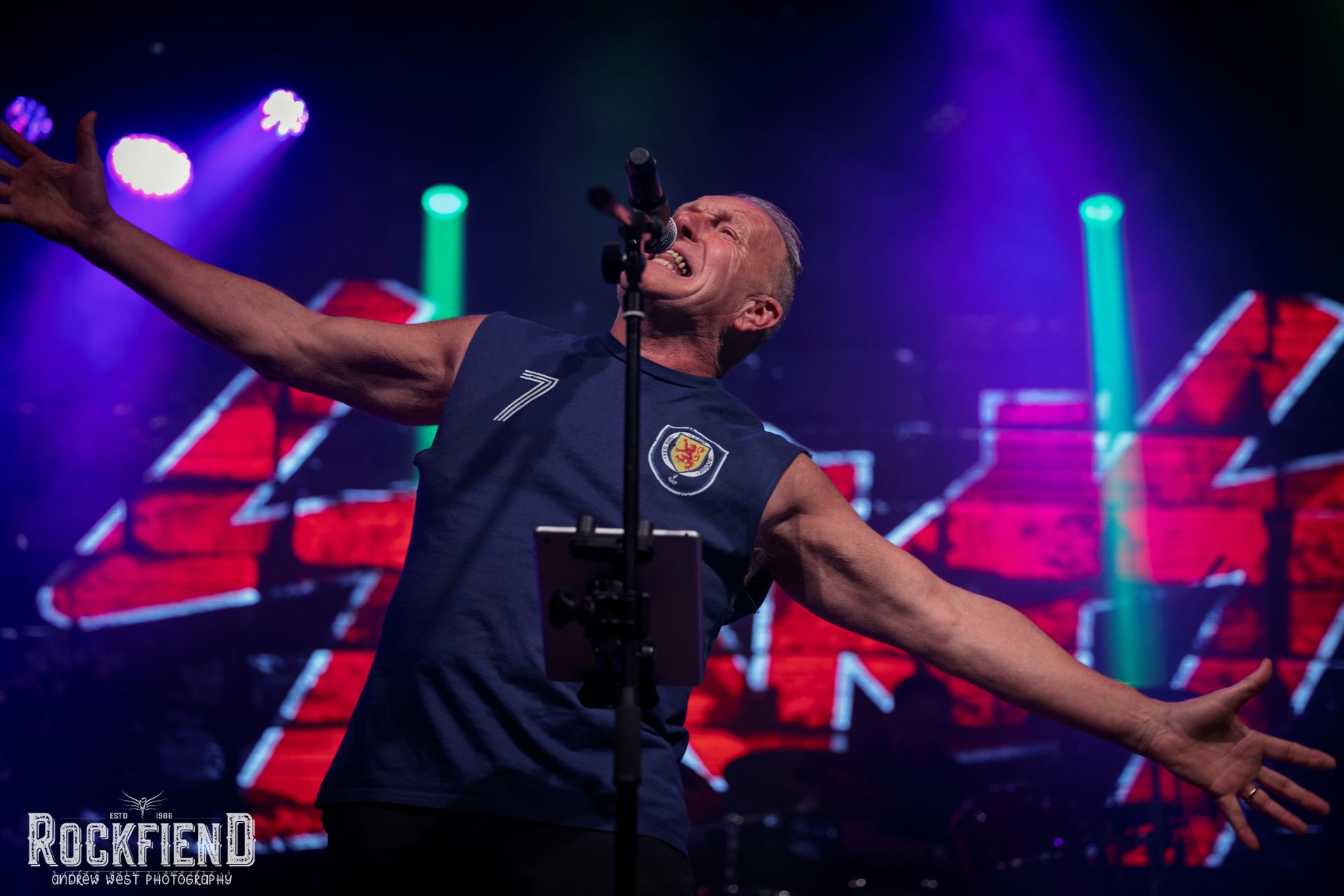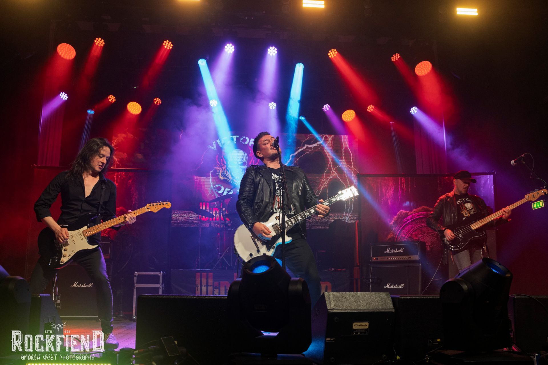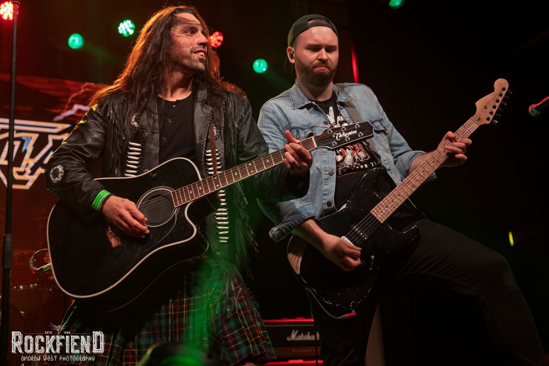 Before all that, a band entirely unconnected to 1980 or Steve Harris started us off. To open a festival on the third and final day can easily cause a bit of trepidation: wondering who’s coming along at 1pm after the two nights before, and hoping that folks haven’t peaked too early with the variety of brews on offer over the weekend (more cider please). The lads in Victory or Die needn’t have worried, and an already swelling hall was in good spirits when the intro tape of much-loved Tartan Army anthem ‘We’ll Be Coming’ blared out across the hall. I’m sure we will all be hearing that tune for many months to come and the Americans will also love it in the summer. With captain and national treasure Jason Sweeney leading his VoD 4-a-side onto the hallowed “turf” of the Troon Concert Hall, if there was ever a band prescribed to cure a hangover, VD would be the natural Alka-Seltzer and a good bit tastier. For the next 40 minutes, they delivered a no-nonsense salutation to British rock, opening with the killer ‘New Rock Revolution’ which very much set the tone and pace for what was to come, while ‘Hang the DJ’ and ‘House of Love’ epitomized the raw, fiery, gut-punching Rock & Roll.