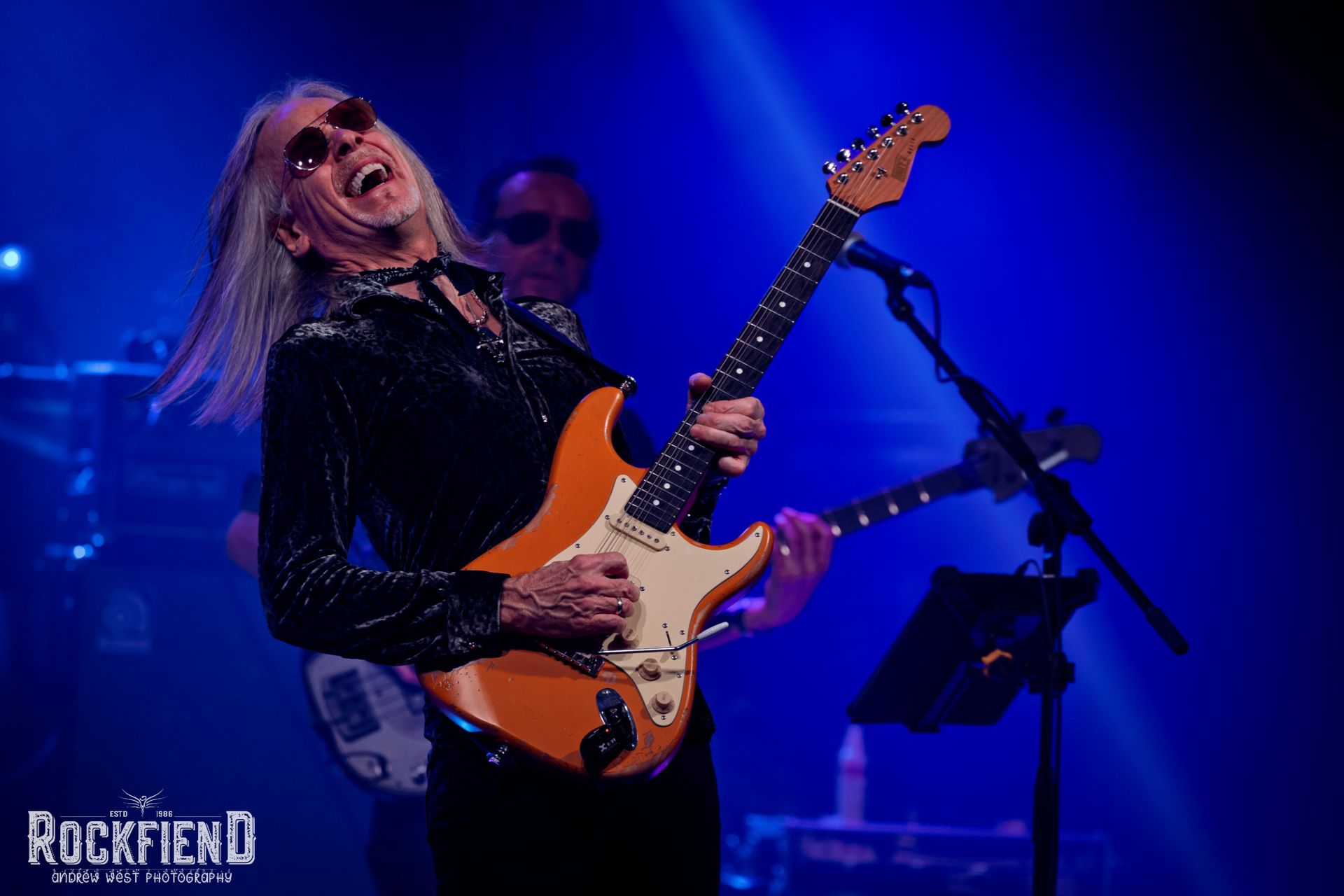 1970s rockers Sweet haven’t played in Ayrshire since a reportedly turbulent evening in Kilmarnock in 1973, when they were bottled off the stage at the town’s Grand Hall. It has always been a bit of a local myth that this chaotic concert led to the writing of the band’s well-known hit ’The Ballroom Blitz’. This was pretty much confirmed by founding member and guitarist, the legendary Andy Scott, the man with the greatest fringe in rock and it seemed like some folks in the audience tonight might even have been there that night – in fact, some of the crowd looked like they might have been outside waiting to collect their kids in 1973.