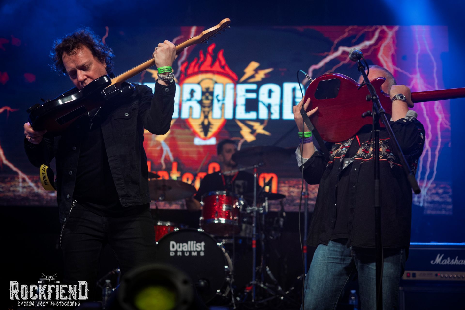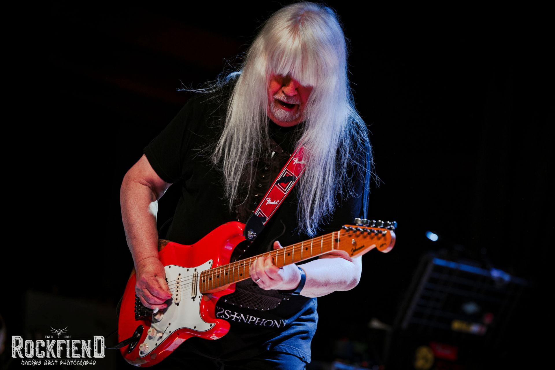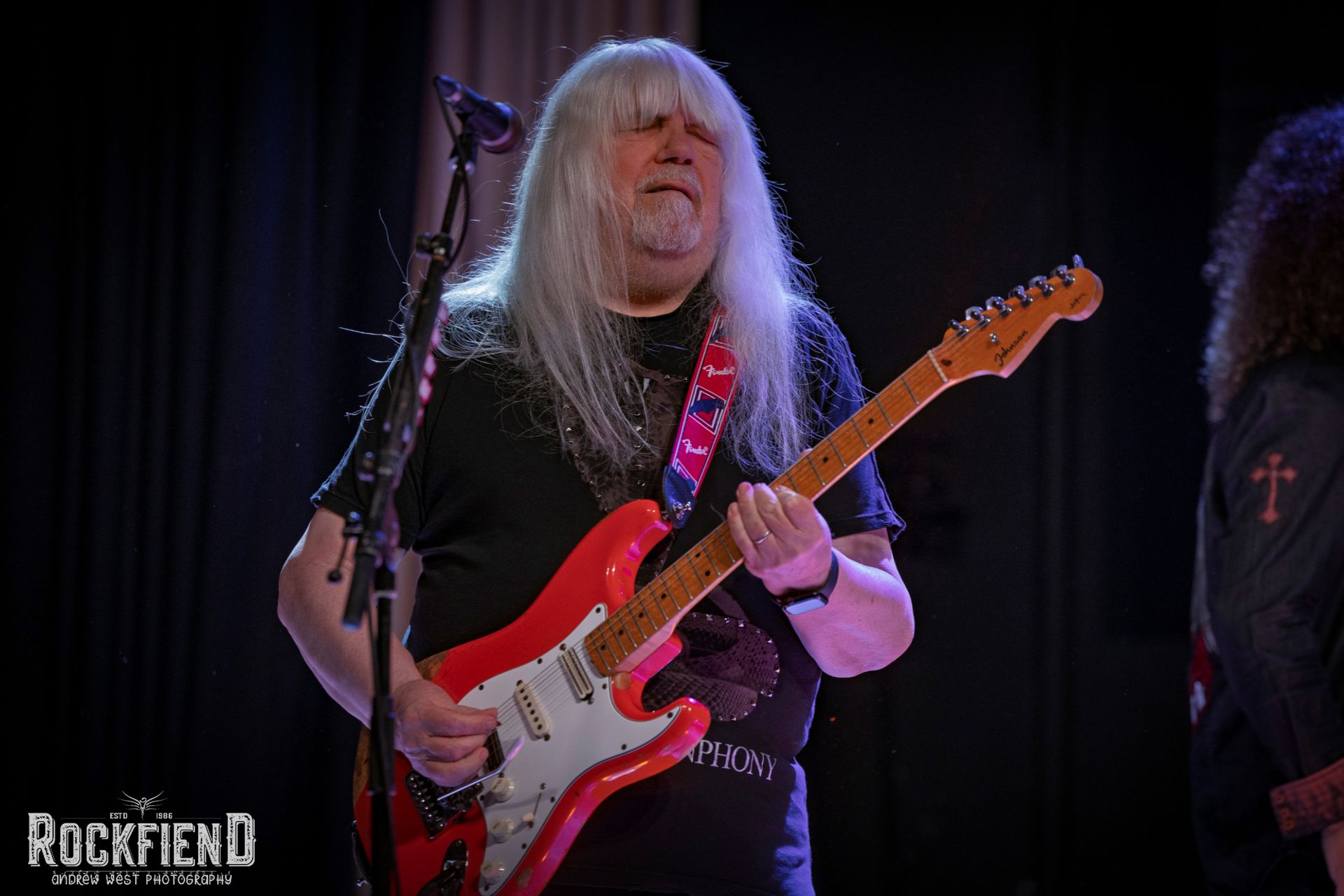 The final act of the night had attracted so much fan attention that the traditional ‘After-show’ set was moved downstairs. That allowed Saffron Gorman (“the Ulster Doro”) the honour of closing things off up the stairs with her Black Eagle Band – something she did with great authority. That left Guitar Heads, featuring affable friend of Winterstorm Jim Kirkpatrick (now known as “the keyboard player from The Sweet”) and Paul Rose on guitars, plus several equally adept friends, to entertain with a spirited set of carefully curated covers, of which ‘Hocus Pocus’ really stood out, in a highly entertaining and appreciated finale.