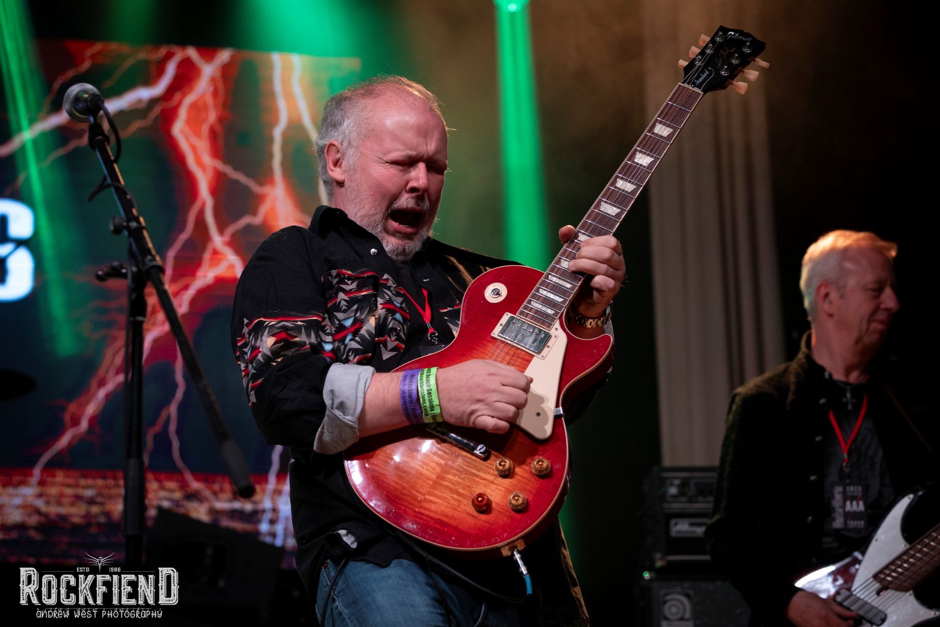 After that, there was some highly-original multi-media sounds from Tony Moore’s Awake; a set focused on not just his own work, but also Bernie Torme, Gary Moore and Rory Gallagher by Pat McManus; and a set of well-loved Magnum covers by Kingdom of Madness, who ironically contain more “real” Magnum members than the current Magnum do; and a set from pre-Maiden Harris-connected band Gypsy’s Kiss.