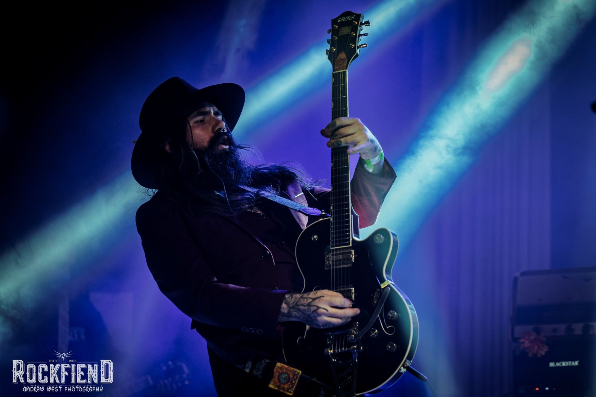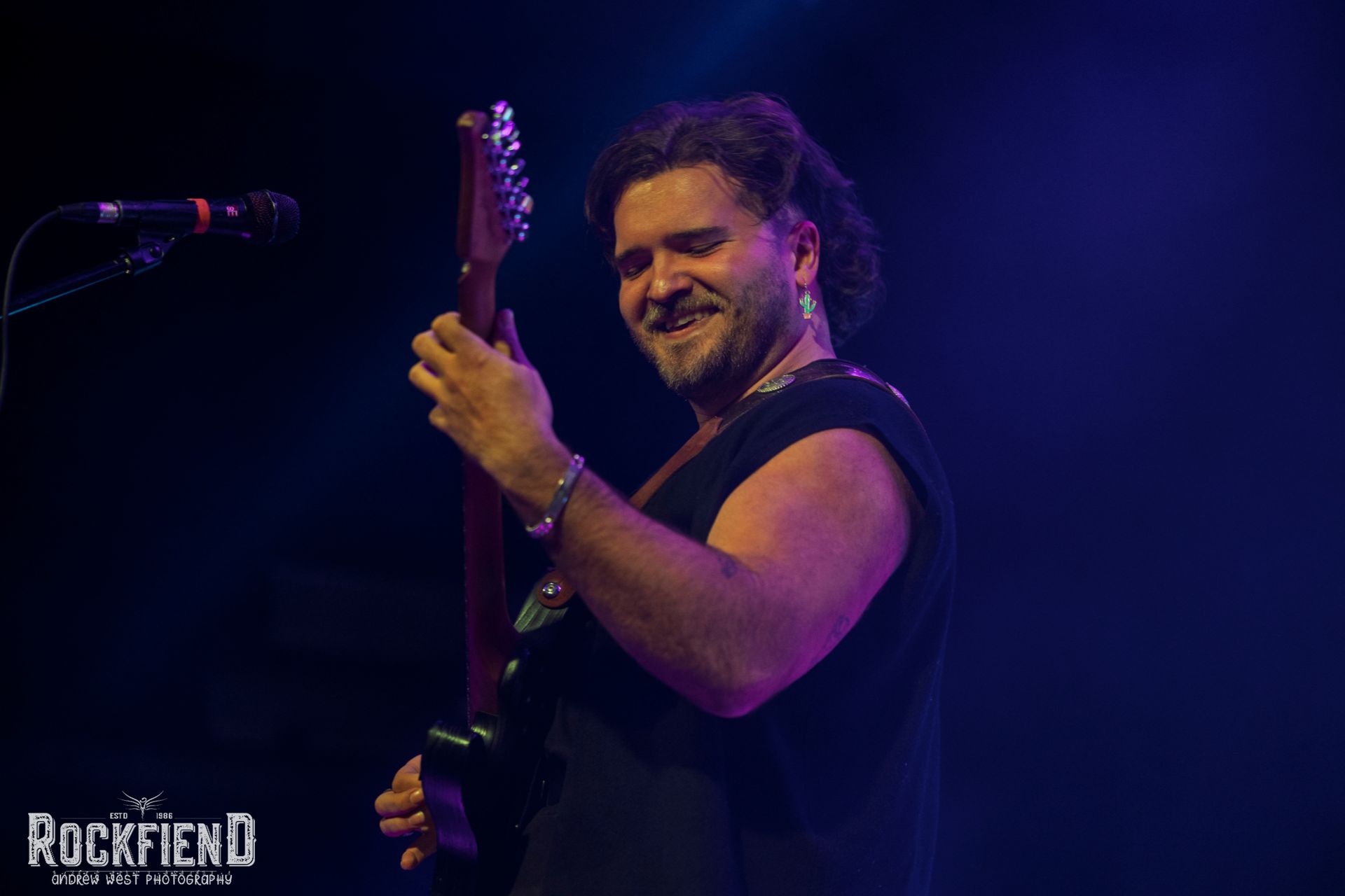 These Wicked Rivers had the most elaborate stage set of the weekend, with vintage rugs, lamps and what looked like a globe-shaped drinks cabinet complementing their hairy and swampy look. But there was nothing swampy about their performance, with music steeped in classic hard rock but with a very bluesy, Southern Rock tinge. Lead guitarist Arran Day (was he aware that the Isle of Arran was visible outside, right behind the stage?) kicked and spun throughout the set, resplendent in a maroon suit, whilst vocalist/guitarist John Hartwell’s road-worn voice is perfect for their style of music. We wouldn’t want to blow blackberry smoke up your ass, but these Brits do a very fine southern rock show, right down to the epic last song ‘Don’t Pray for Me’ with its twin-neck guitar freakout. Very impressive.