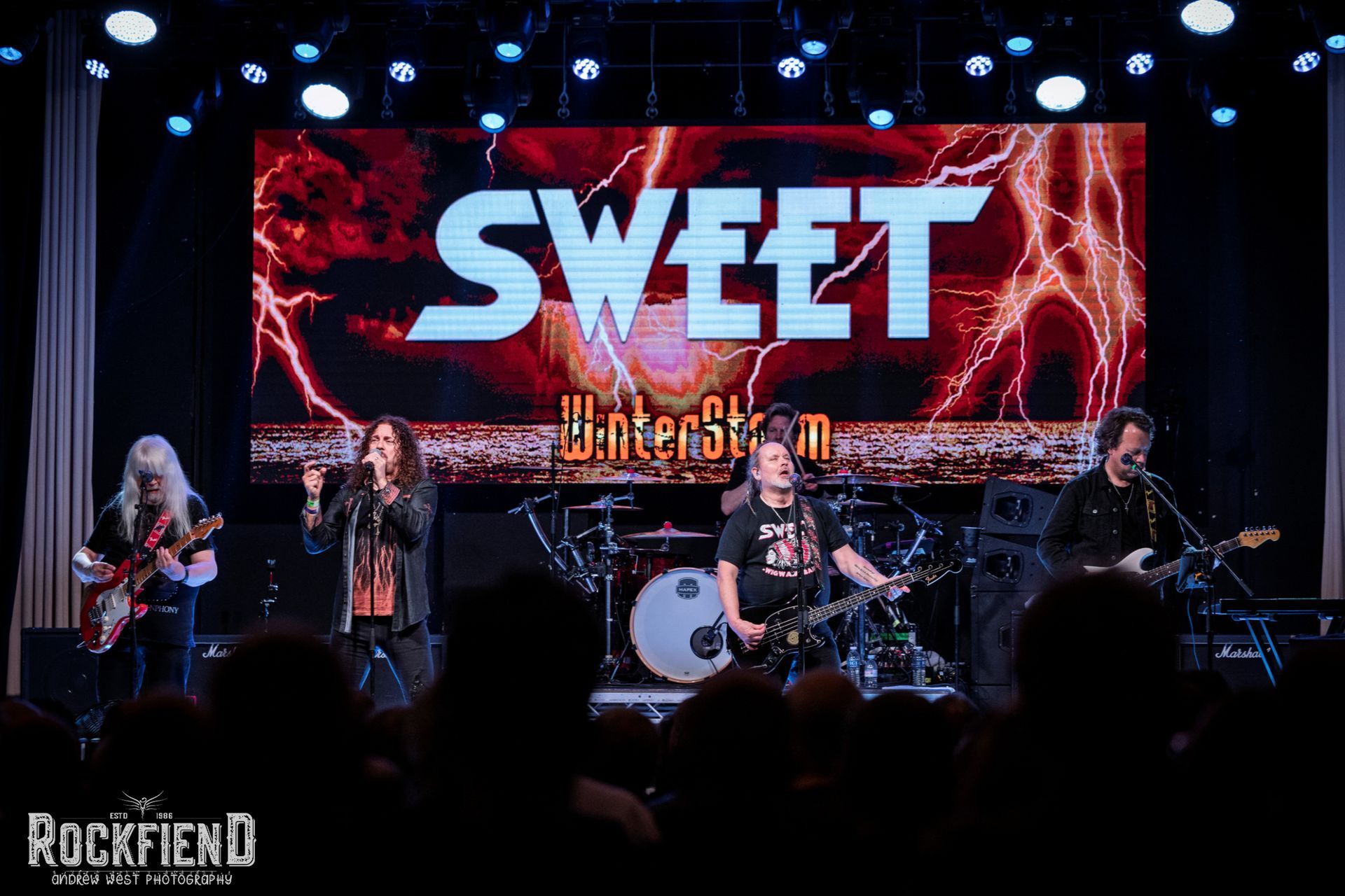 Starting with ‘Action’ (famously covered by Def Leppard), Sweet performed a set made up of genuine rock classics such as ‘Hellraiser’, ’Teenage Rampage’ and Christmas party favourite ‘Wig Wam Bam’. Scott didn’t seem overly happy at the lighting (or lack of it), stating that he couldn’t see his guitar (“I’m a 76-year-old man”), so it was perhaps the brightest lit Winterstorm performance… ever! Good news for photographers. The really good stuff was left for the end of the set, with ‘Love is Like Oxygen’ making way for a final trio of ‘Fox on the Run’, ‘Blockbuster’ and the aforementioned ’The Ballroom Blitz’. People of a certain vintage danced, grooved and sang along to songs that were the soundtrack of their 1970s youth, whilst others who were slightly younger and less familiar with the band, looked like they just didn’t have a clue what to do! For one Rockfiend scribe, this gig seemed to complete a 70s glam rock tick list of bands seen that now includes Sweet, Slade, Suzi Quatro, Gary Glitter and The Bay City Rollers. Is anyone from Mud still alive?